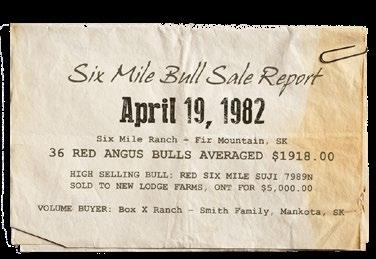 1975 Six Mile Red Angus held its first bull sale. The first two sales were smaller on farm events with no catalog published. The bull sale was moved to Swift Current in 1977 and held on May 7th and the first catalog was published; a sale manager was hired and Gail Wildman of Towaw Cattle Co served as the secretary.