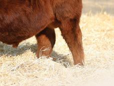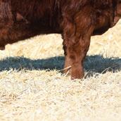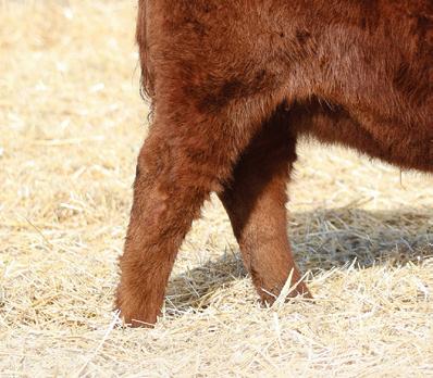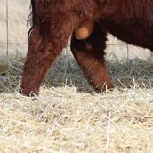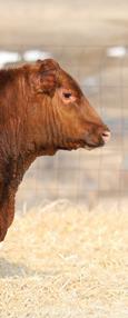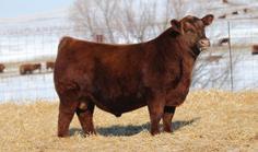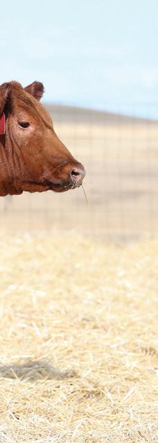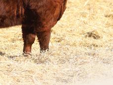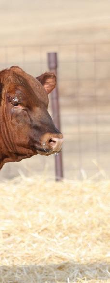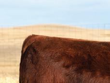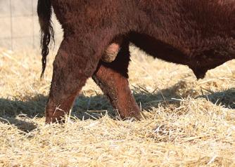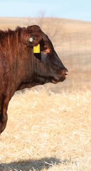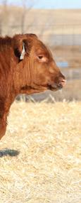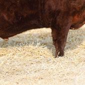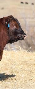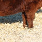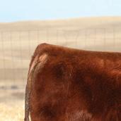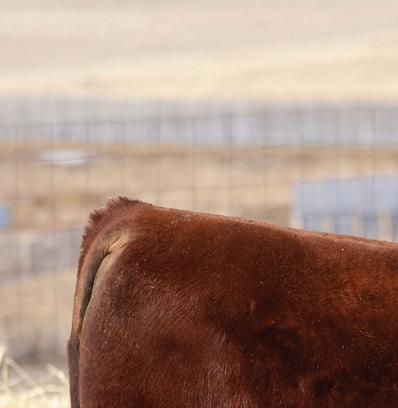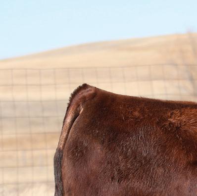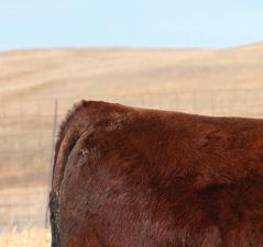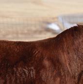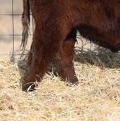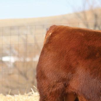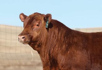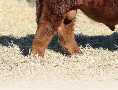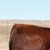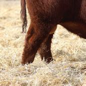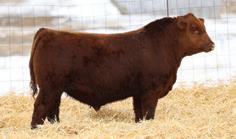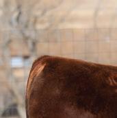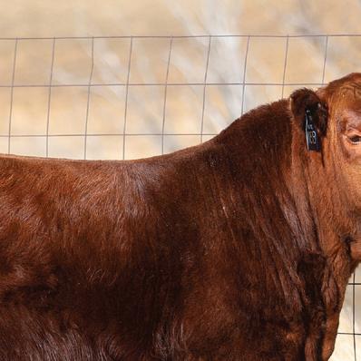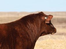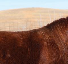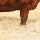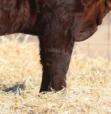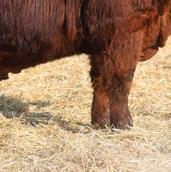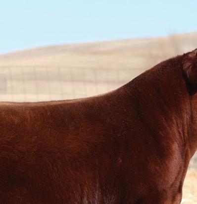 One of the most highly anticipated Red Angus bulls to sell this spring is “Six Mile .44 Magnum”. An outlier in terms of foot quality, body and muscle shape coupled with undeniable herd bull presence and athleticism. He was admired in “ e Yards” in Denver by folks from across North America. Numerous breeders heard chatter of a Red Angus bull as intriguing as they come. .44 Magnum is the type of bull that can be appreciated by all facets of the cattle industry.