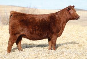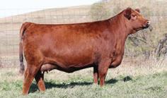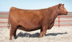 Balanced EPD pro le on this Lot 16 bull. He is shapely in his muscle design with added spine length too. Minola 404G is a powerful female that milks heavy cream. She has one daughter retained in herd and a daughter was selected by Sandbur Ridge Red Angus. Lifetime wean ratio of 107 on 4 calves.