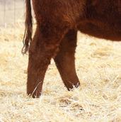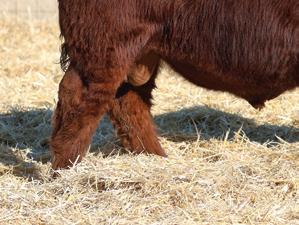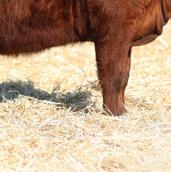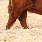 Heifer Pen candidate here that will keep frame size in check. Awesome dark foot on this bull too. His dam, 34H is hairy, dark red and exhibits and elegant front end, lots of length of spine and is sound footed. A son was selected in 2024 by Fran Rieder.