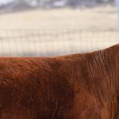 Head Rush was the lead o bull from the Rainbow Red Angus Dispersal sale back in 2023. He presented an outcross pedigree to our herd and the Red Angus gene pool. His dam, Doll 46B, is a CAA Elite Cow with an arsenal of herd bulls produced under her belt including Metric 106K and Legion 25H. Head Rush adds length of spine, structural correctness with a dark red color and superior calving ease at birth.