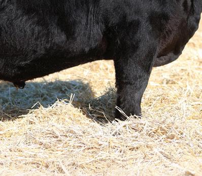 Heifer Bull with extra stretch and grow. Dam of Lot 127, 499F is one of the most phenotypically impressive and physically imposing females on the ranch. We purchased her back from Garth Cutler when he dispersed his Angus herd. 499F stands on big, solid feet, she is capacious, stout, powerful and exhibits a great udder. Since her return to Six Mile she has one daughter retained in herd that ranks as one of our favourite rst calf heifers.