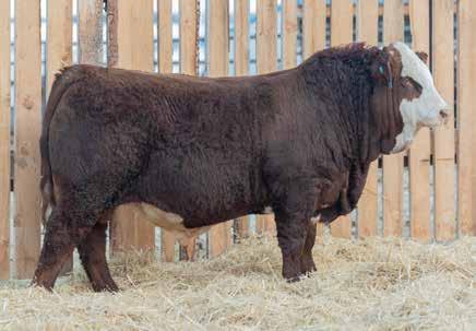 • Trooper is a dark red, heavy haired polled Titan son that will work perfect in a pen of heifers. He’s smooth made with a tiny skull, easy fleshing and flashy look to him.