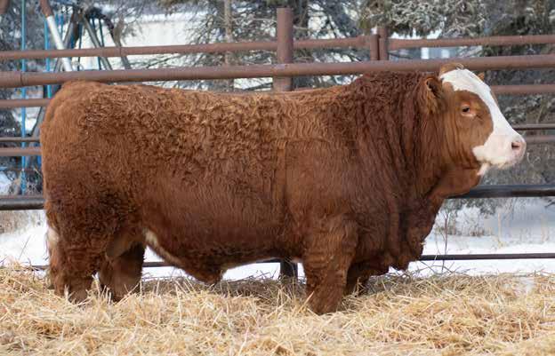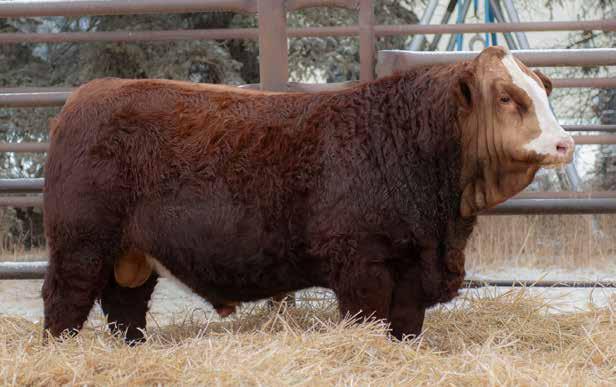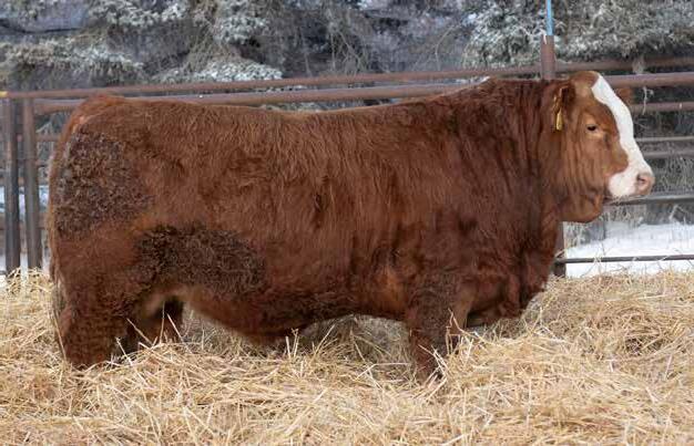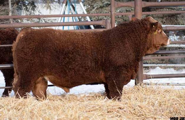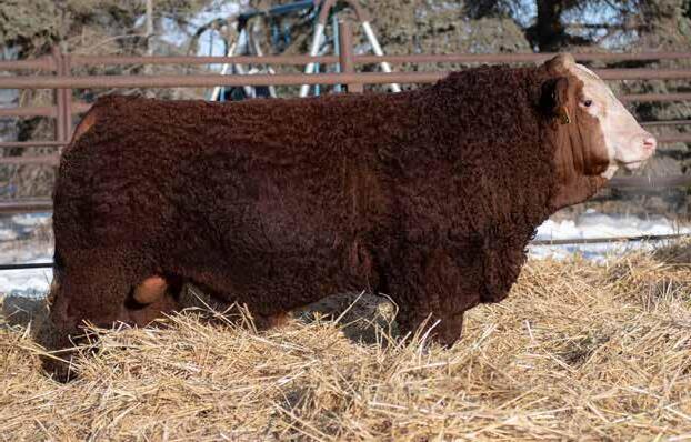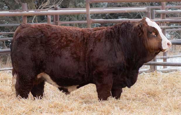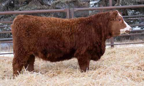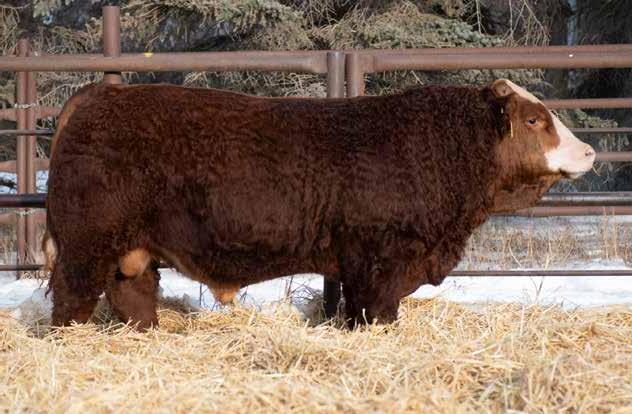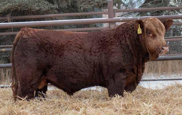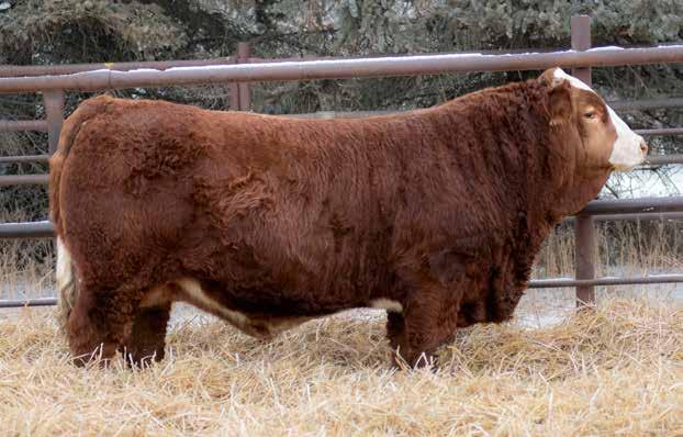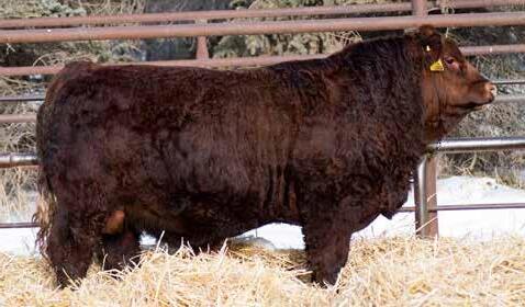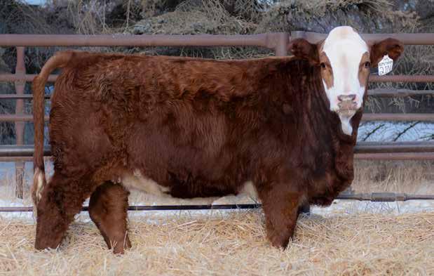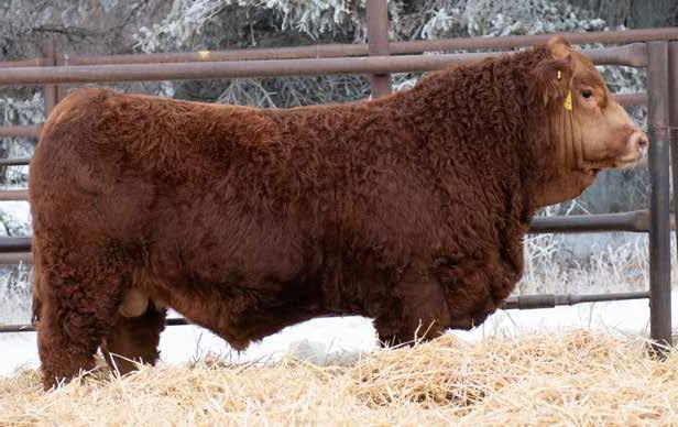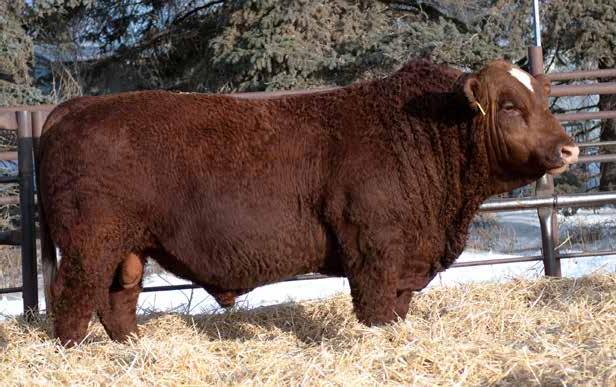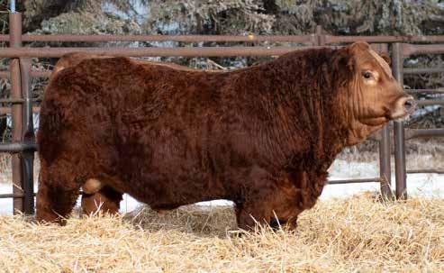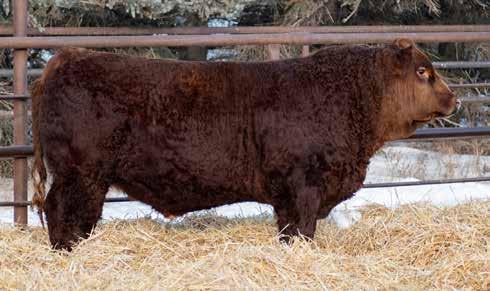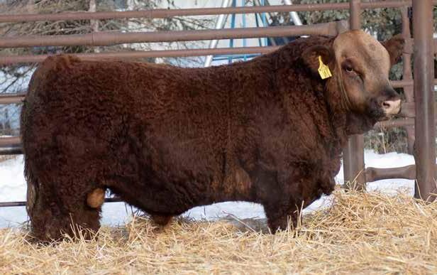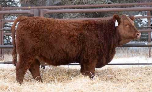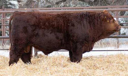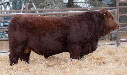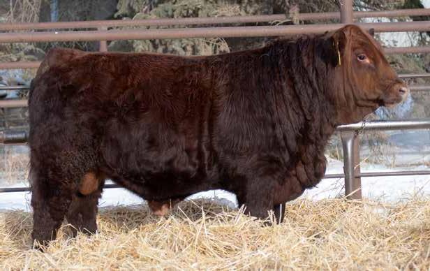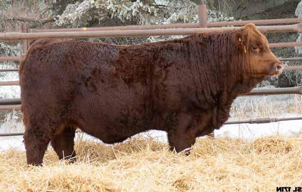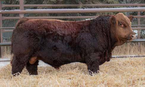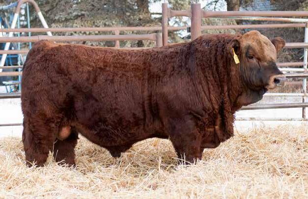 Tribute 172N has a presence about him and he grabs your attention when he walks across the pen. He is a liver red, deep bodied, big hipped bull with a hell of a hair coat. His mother is a very good uddered, moderate framed cow that knows how to put performance and weight in her calves as seen in this bull. If you want your calves to push down the scales in the fall, consider 172N.