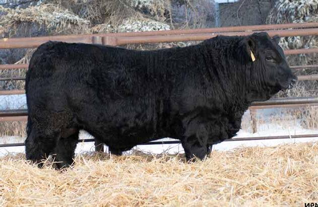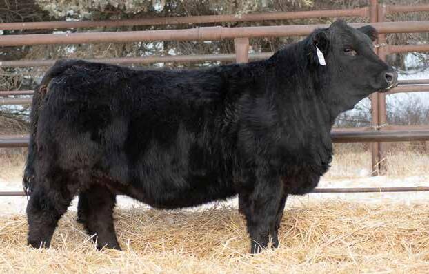 A little different twist here in a black bull sired by Marucci coming out of a traditional fullblood Spur sired cow. This heavy quartered bull has the length , depth and thickness that could be that little extra you get when crossing with a fullblood. Use this guy to do the same for you. He will surely add pounds to your next calf crop.