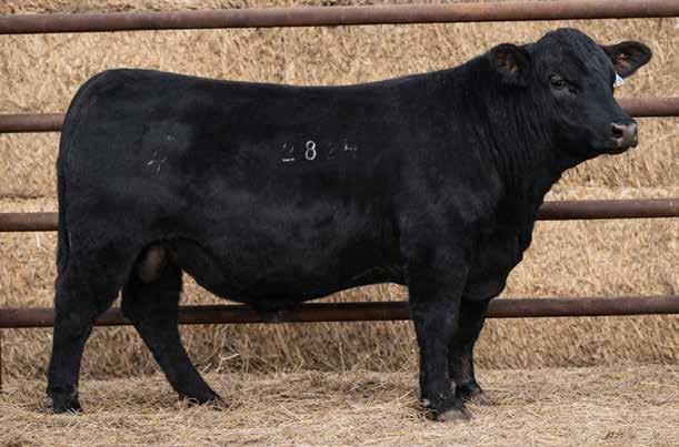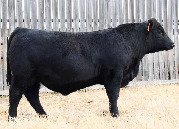 272M is a super attractive, nice headed calving ease bull with length capacity and exceptional docility. His wedge shaped dam by Payweight has a beautiful maternal design with loads of Angus character.