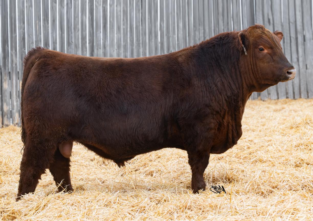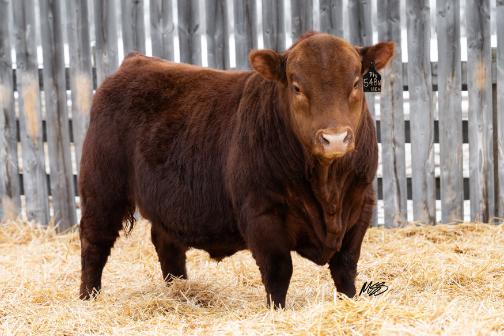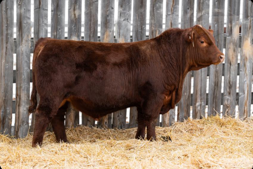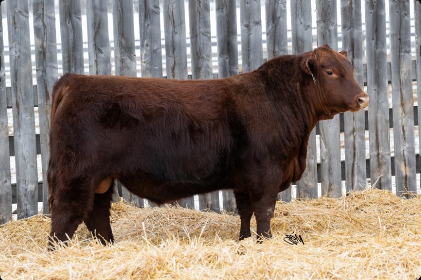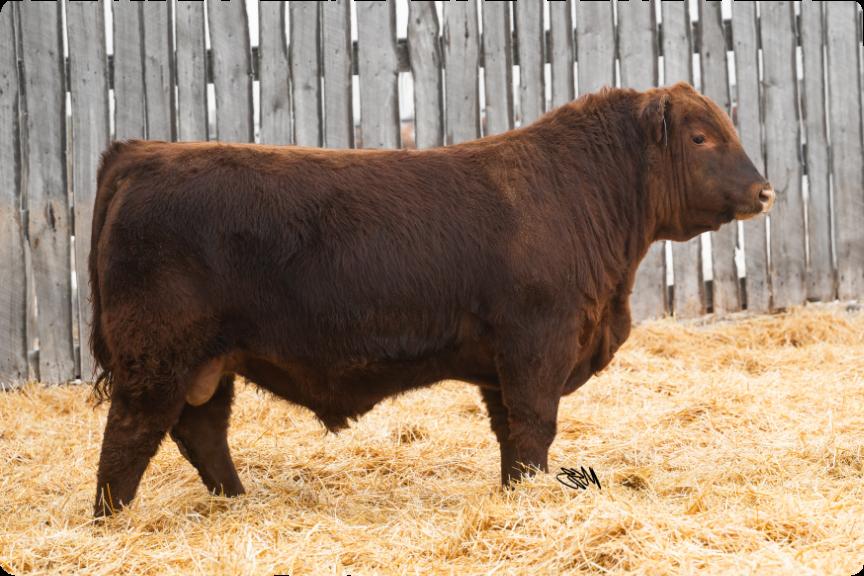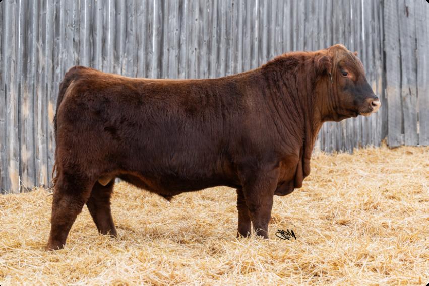 One of the best things about the advancement of genetic technology is the ability to reach into the tank and reuse genetics from days gone by. In 2020 we had a natural bred son from Cadet 1C and a Yesmaam daughter 329A. We really liked the look and make of him so we kept him for use in our own herd. Now years later we were able to recreate that pairing into anothergreatson.Insurgent 543N is a dark red bull, smooth through his head, shoulder and rear. He has a bit of leg under him, ensuring that he will fijill out into a nice size bull, while also having the ability to breed both large heifers and cows with ease.