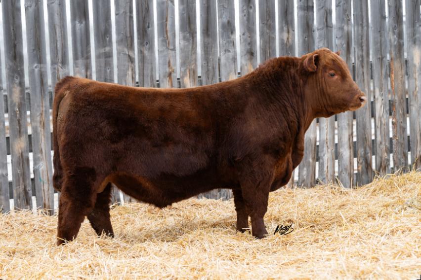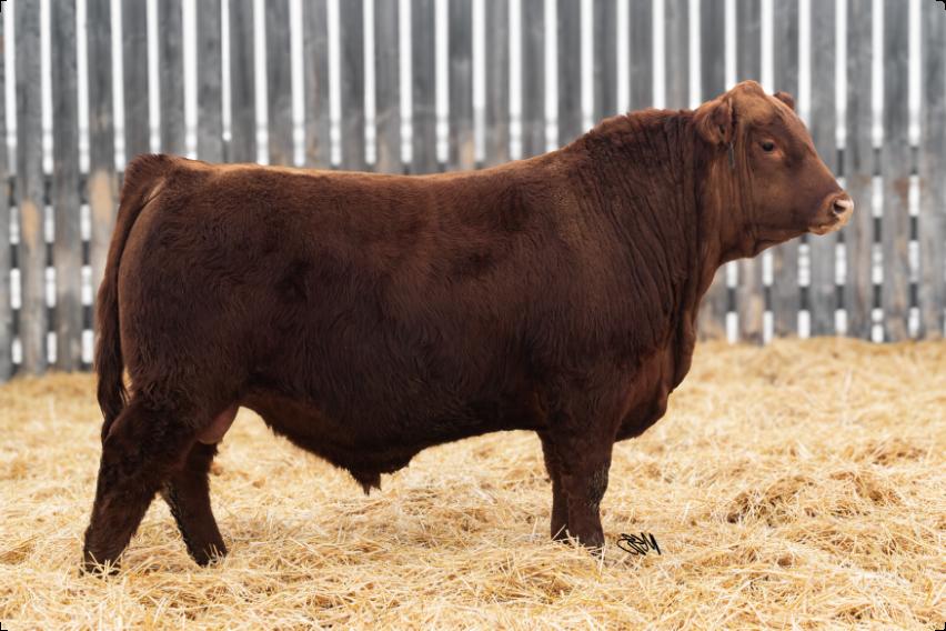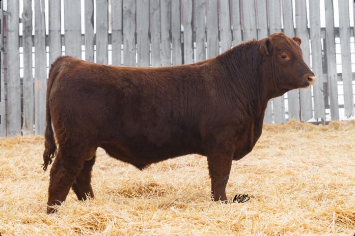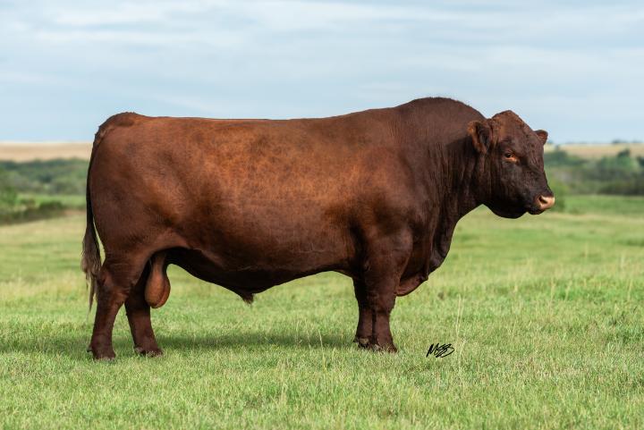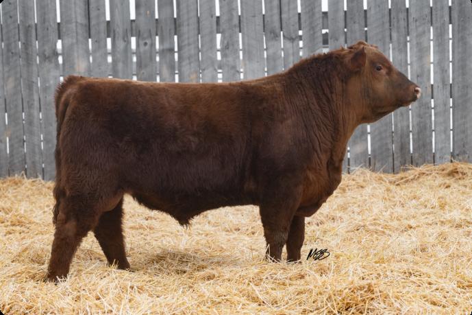 Notre Dame is as complete a herd bull prospect as any in the offfering this year. He has a pen presence coupled with a quiet disposition that will have you picking him out over and over again on a pentour.Becauseif heisn’tposinglikehe’swalking New York Fashion Week, then he might be eating your jacket. He is made sound, and boldly, with ample hip shape. His mother is a highly productive cow from our Lassie line. 583N is going to flat out produce wherever he lands, and he will work well inboththecowpenandtheheiferpen.NotreDame 583N really is Jack of all trades. 583N