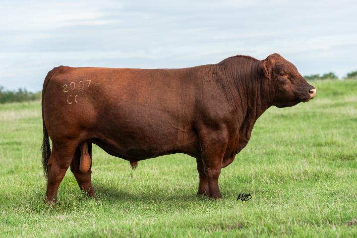 Moderately framed, stout, built low to the ground; Newsboys 593N overall capacity is to be admired. He is cool, calm and collected, while making sure he converts every ounce of feed into poundage. His mother is a sound made excellent udder cow whose progeny has done well in all the herds they have joined.