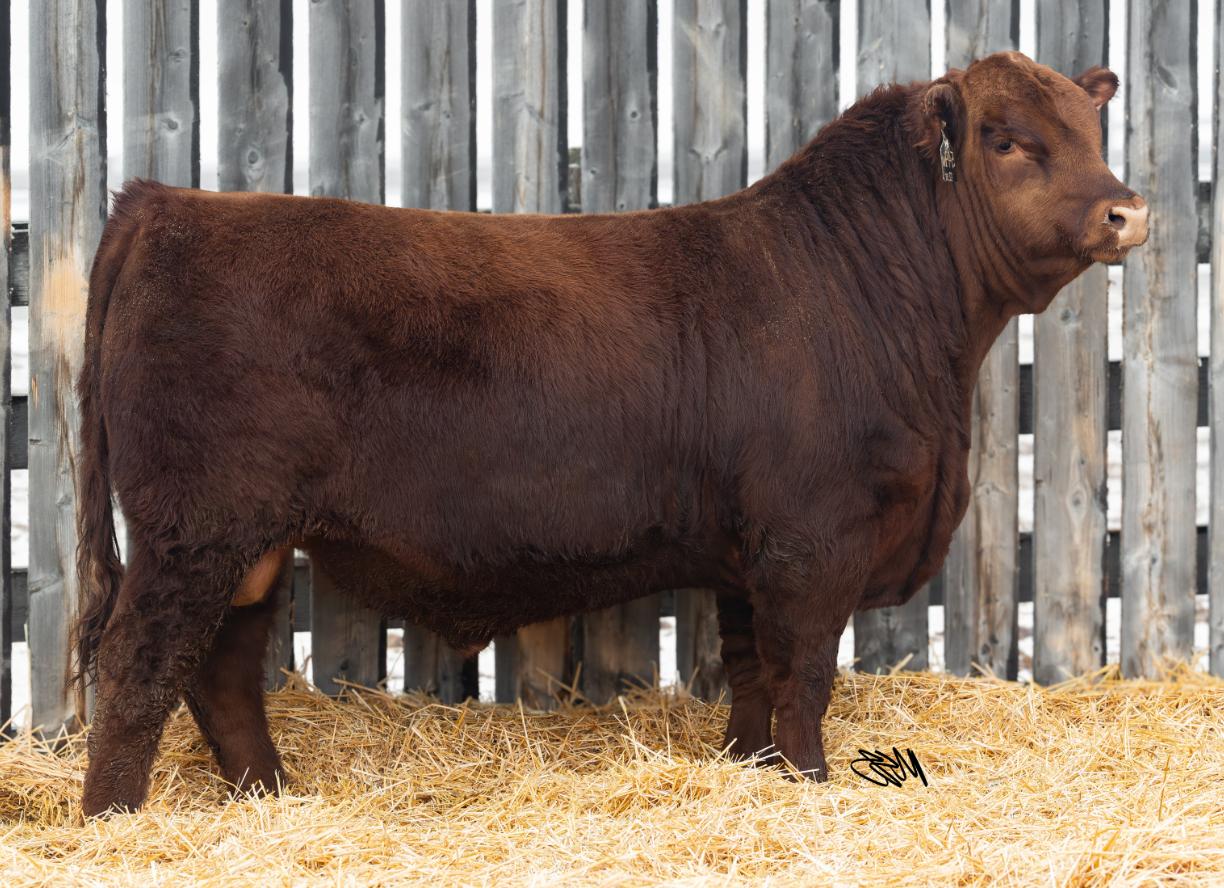 Standing true to “letting our bulls look like bulls and our heifers look like heifers”; advice we were given early in our ranching careers, we have been able to build a bull pen that we are incredibly proud of. Presenting you with a great mix of genetics that come from strong AI sires and embryos, walking bulls we’ve bought or raised, and of course Jefffrey’s most favorite thing since sliced bread; Red B-Elle Revelation 215K. Revy has redefijined for us what consistency and predictability can look like in a cattle herd. He himself is balanced; his calves display an ideal skull shape combined with correctness, fluid structure and all around soundness. He is heifer-tested and approved, yet excels equally well on performance-oriented females. Proven across several purebred programs and commercial herds, he is leaving his stamp on the Red Angus Breed. This will be the last bull crop offf of our ol’faithful bull Red Wheel Judge 22G. Year after year he gave us udders, calving ease and foot structure that will continue to be seen in our herd for years to come. Slowburn 2007; a direct son of Slowburn 102H gave us smoothness and a top line flatter than the Saskatchewan prairies. Red Ter-Ron Jameson 55J gave us daughters that are structurally sound while still maintaining femininity. There is also a few embryo calves for sale this year as well. Sons from our esteemed 162Y donor cow; who also happens to be Revy’s mama. Sons from Slowburn 102H, as well as the infamous Six Mile bull; John Wick himself.