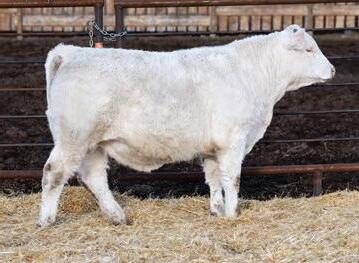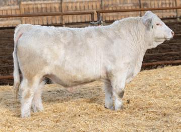 Norbert is a bull with a packed pedigree, a son of the great SOS Luxor 358L sired by PCC Bourbon 118J. He is out of SOS Princess Kate 33Y; she is who’s who in the Charolais world. He is stamped with the hip, length, depth that comes with his stellar pedigree