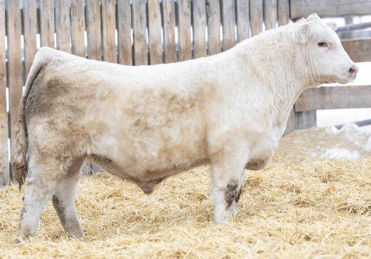 — A super well built calf that is very well balance with a good frame, nice muscle tone, good bone and a ton of hair and a nice buff colour