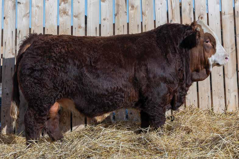 DNA Verified Homo Polled, Dilutor Free, Parent Verified Nightcrawler is great example of traditional Simmental values. Another Darwin son and it shows with the powerful shoulder and thick coat. His dam was a highlight of the heifer pen last year and raise a stud in the bull pen.