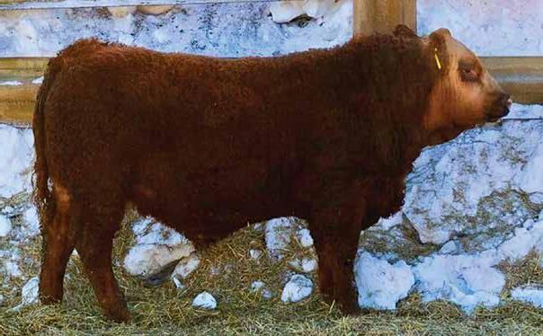 The Black Gold Tycoon 194L, red bull is our newest herdsire. He adds a tremendous amount of rib and calving ease to his bulls. He is also a full brother to SVS Rancher, a bull that adds a lot performance and style to his progeny.