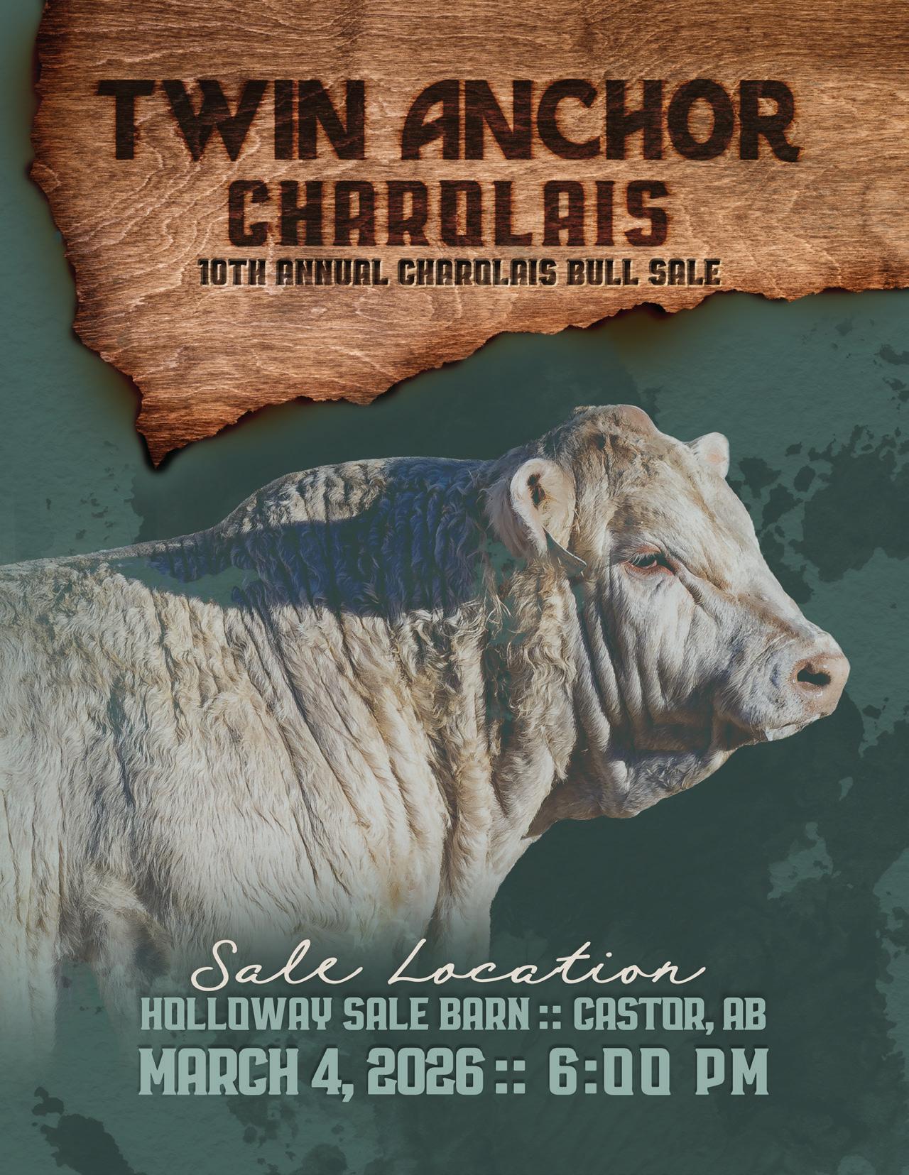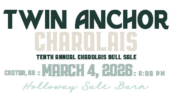 The Twin Anchor Bull class of 2026 has produced a top end set of sires for your evaluation. Our feed program has continued with the Country Junction bull pellet and a TMR ration, utilizing both dry hay and oat silage. Our herd sires all have proven to be easy calvers, with that extra punch for good weaning weights. The genetics we have built our herd with have been carefully picked, and I think you will agree the quality shows in these bulls. We place great importance on performance, hair, calving ease, and longevity. We strive to provide our customers with bulls that will provide these qualities and sire a calf group to be proud of.