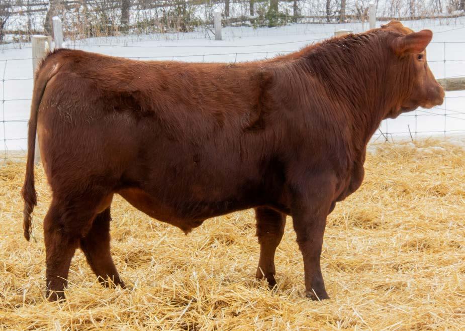 The puppy dog of the pen. 88N is a maternally powered, sound structured bull that puts “low maintenance” at the forefront when you think of red angus cattle. His dam Ms Lark 12K is a full sibling to the semex sensation Red Six Mile Mossy Oak 175H