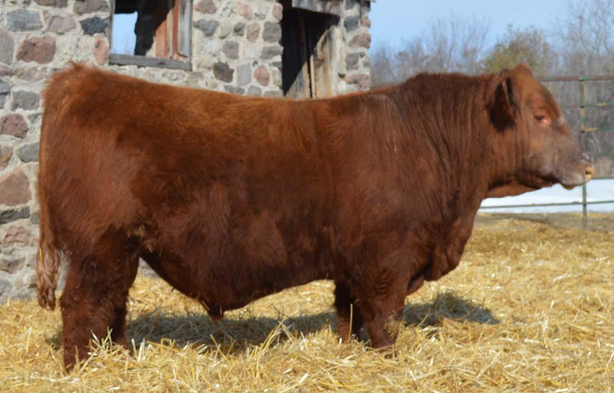 Another bull with the spine length that will add pounds on the calf crop. Red Six Mile Hudson 156H was a must own bull out of six miles 46th annual bull sale where he commanded $30,000. He injects his length of body and a cowmans skull. His daughters are easy fleshing, and put down the most perfect udders with exceptional teat size and placement.