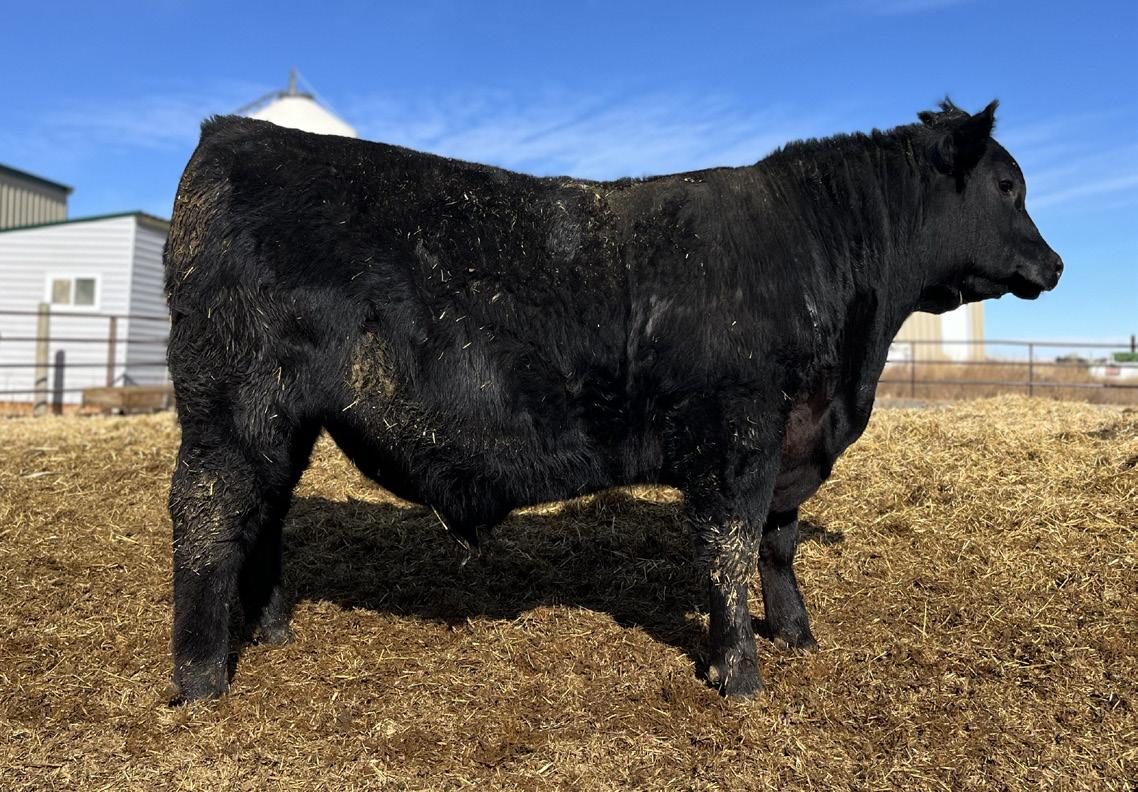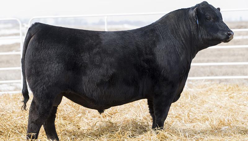 A moderate heifer bull with a 60 lbs birth weight. The kind of bull you can turn out with the heifers and go to bed at night when they are calving. From a Stunner daughter.
