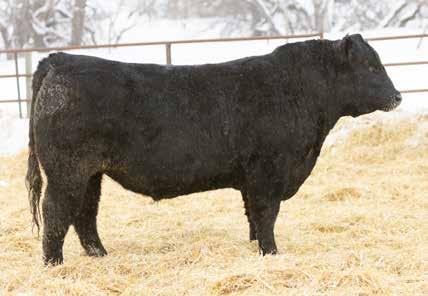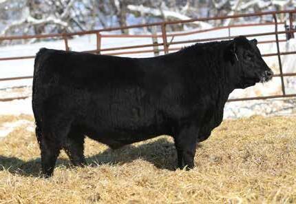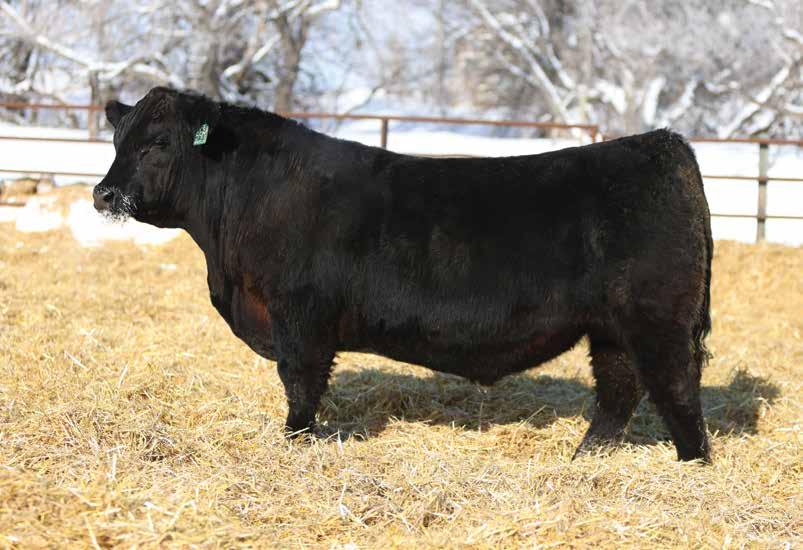 The longest bodied bull in the pen which adds extra pounds. He was the highest indexing bull at weaning and yearling weigh time amongst all the natural calves. He gets that extra length from his dam, Avocet 79E, who is a daughter of the premier female maker Lewis 3008B. Heterozygous Black.