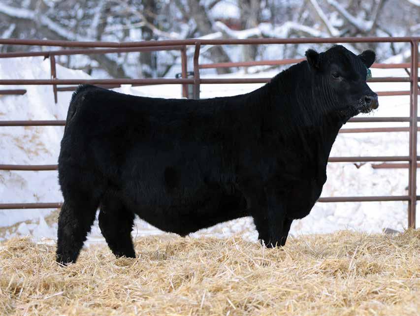 Convoy is the result of an embryo we sold to Bar Double MM and after seeing him we decided to buy him back to use in our own program. Never before have we bred a bull that we feel represents what we have been trying to achieve over the past 25 years in our breeding program. Knowing how his pedigree is stacked gives us great confidense in how he will reproduce his type and kind. You will not find an Angus bull that packs more natural muscle on to a sensible frame size. He stands on a solid foot, has lots of hair, and we admire his skull shape and masculinity. His dam Annie Oakley has not missed and is one of the most unique cows in the entire breed.