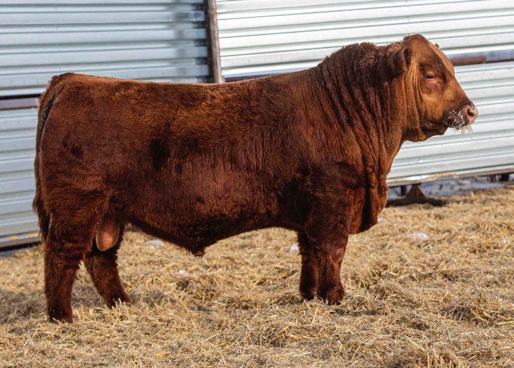 527 is a blood red, stout featured, Jumpstart son that will initiate the 2026 edition of the bull sale. 527 is a cowman’s kind of bull – muscular, heavy, good-footed, with a great young cow behind him. 527 is a bull that can be utilized in many di erent scenarios; the guess work is done here!