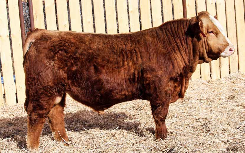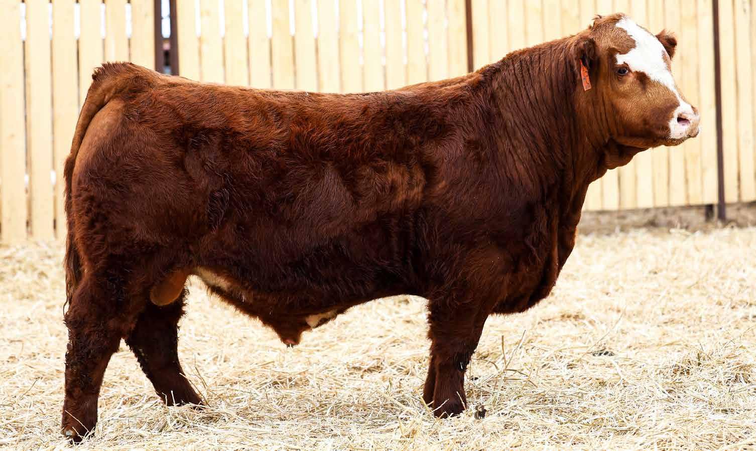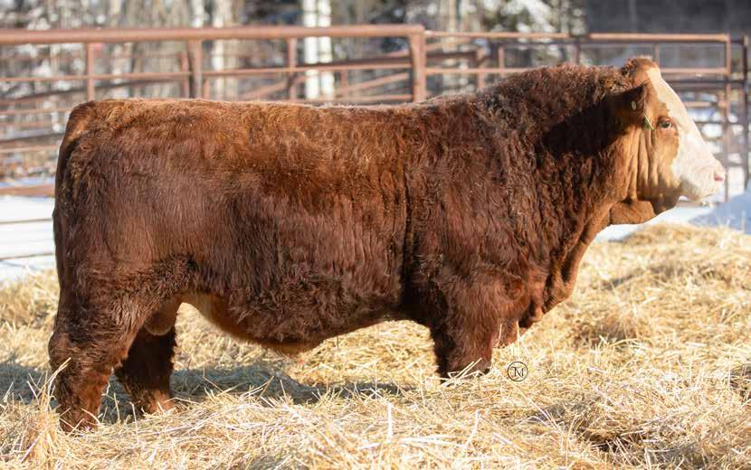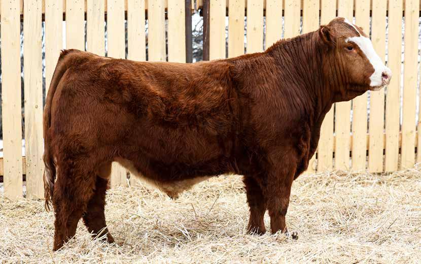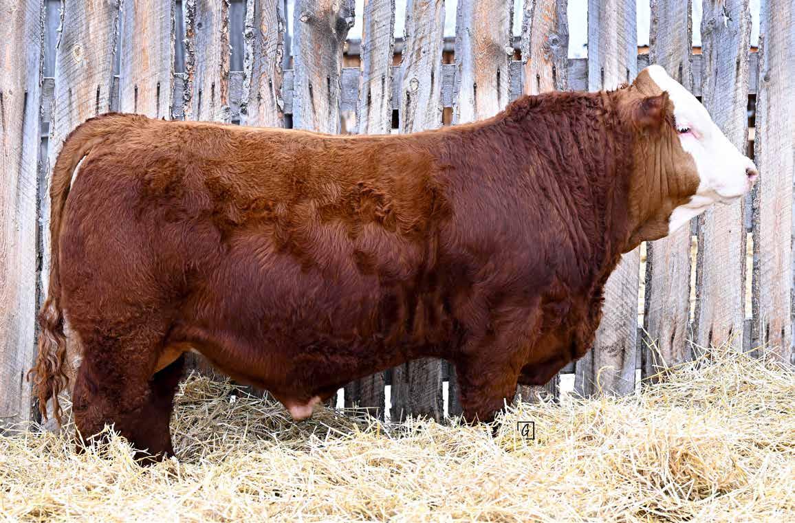 7/8 Simmental Now here is a bull who has been a standout from the moment he hit the ground! 54N is a cat on the move, long spined with fantastic natural muscling, depth of rib and capacity. His first calf dam, did an incredible job and is a young cow with a very bright future here. Her milking ability is second to none and her udder placement couldnât be better. 54N hails from the Jessie cow family which has built the Skylark herd. These cows are incredibly maternal. They do a great job and look really good doing it! 54N is a son of MRL Sleep Easy 140D and with Virginia Marquee and Kuntz Sheriff in the pedigree, there is more than ample calving ease in this bull. 54N is the perfect balance of calving ease that wont sacrifice on performance in a polled package. Honestly doesnât get much better than that!