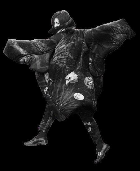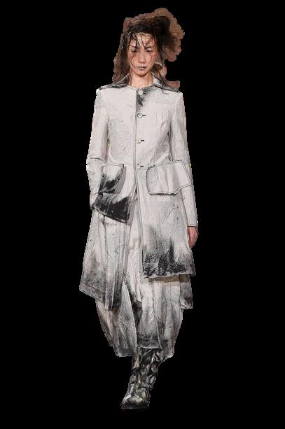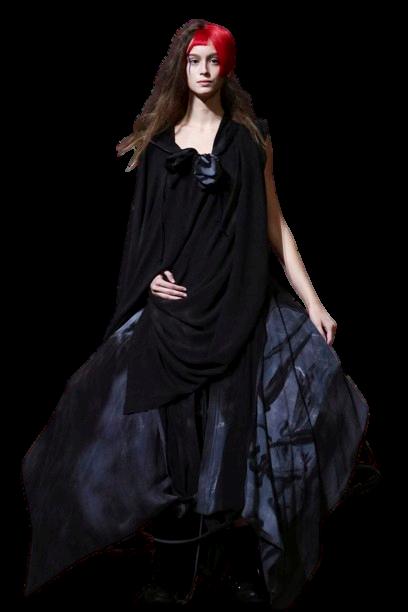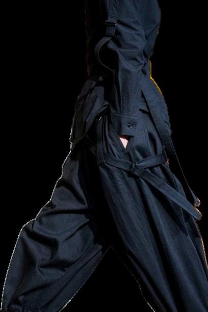 Fluidez: Muchas de las prendas de Yamamoto son holgadas y fluidas, permitiendo libertad de movimiento y creando una sensación de misterio y elegancia.