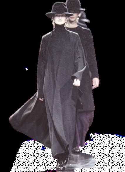 Negro: El negro es el color dominante en las colecciones de Yamamoto, simbolizando el misterio, el poder y la rebelión contra las normas estéticas establecidas.