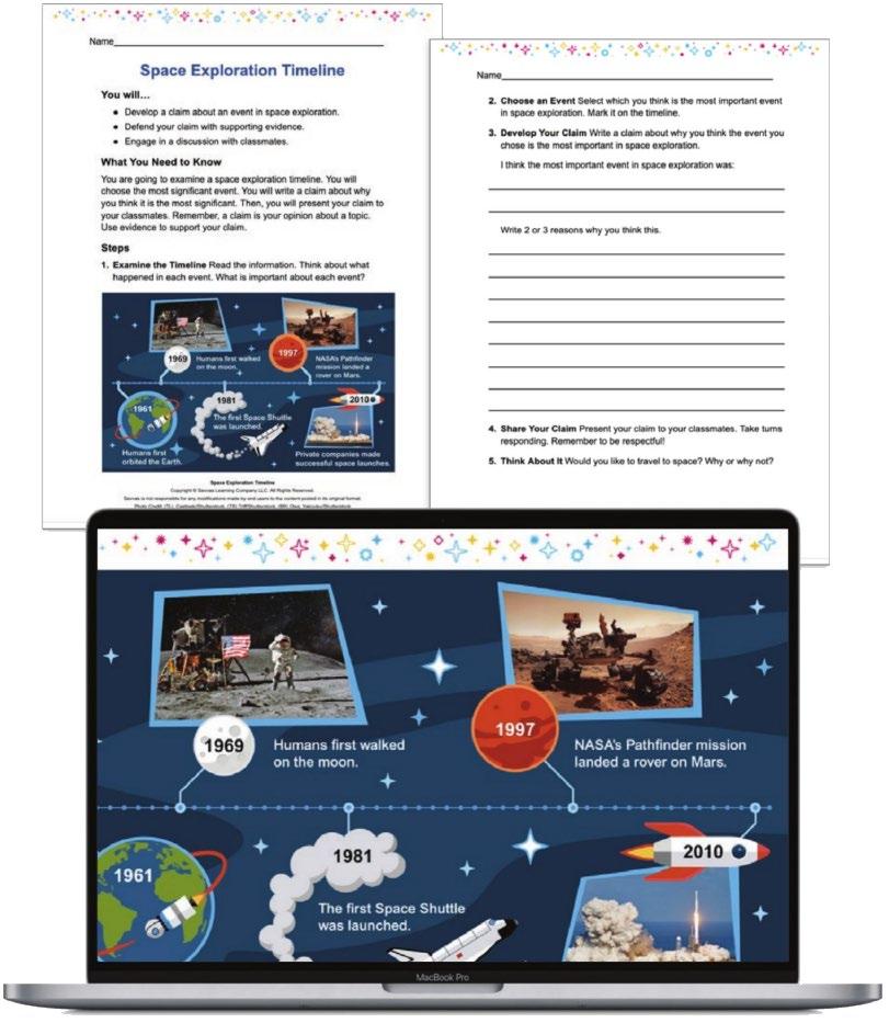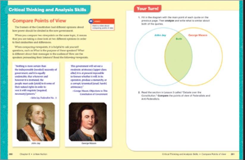 Inquiry activities ignite curiosity and facilitate critical thinking, teaching how to analyze sources, cite evidence, and take informed action.