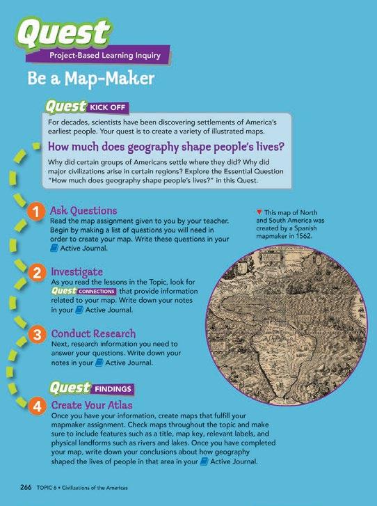 B Take students on a Quest! These long-term projectbased learning opportunities, engage students in rich inquiry experiences that develop important analysis and citizenship skills.