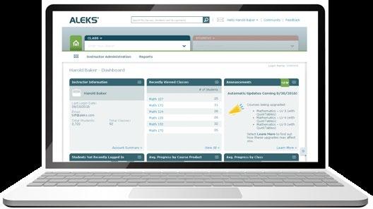 Students begin with an Initial Knowledge Check. The results are summarized in the ALEKS Pie. Within each pie slice (topic area), the colored section shows what a student knows.