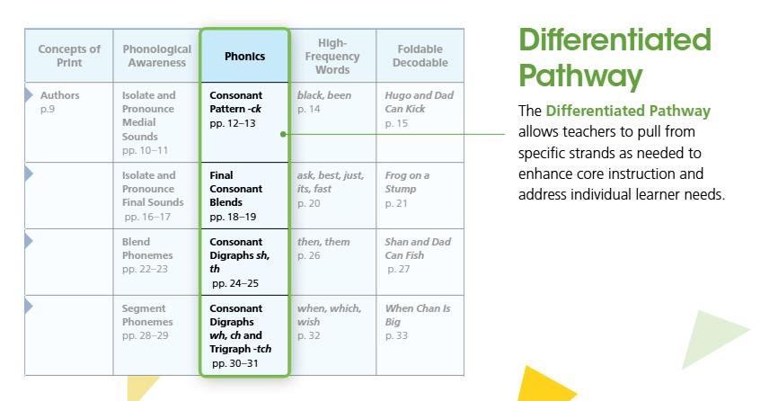 Differentiated for all students with targeted foundational skills intervention and progress monitoring connected to core instruction.