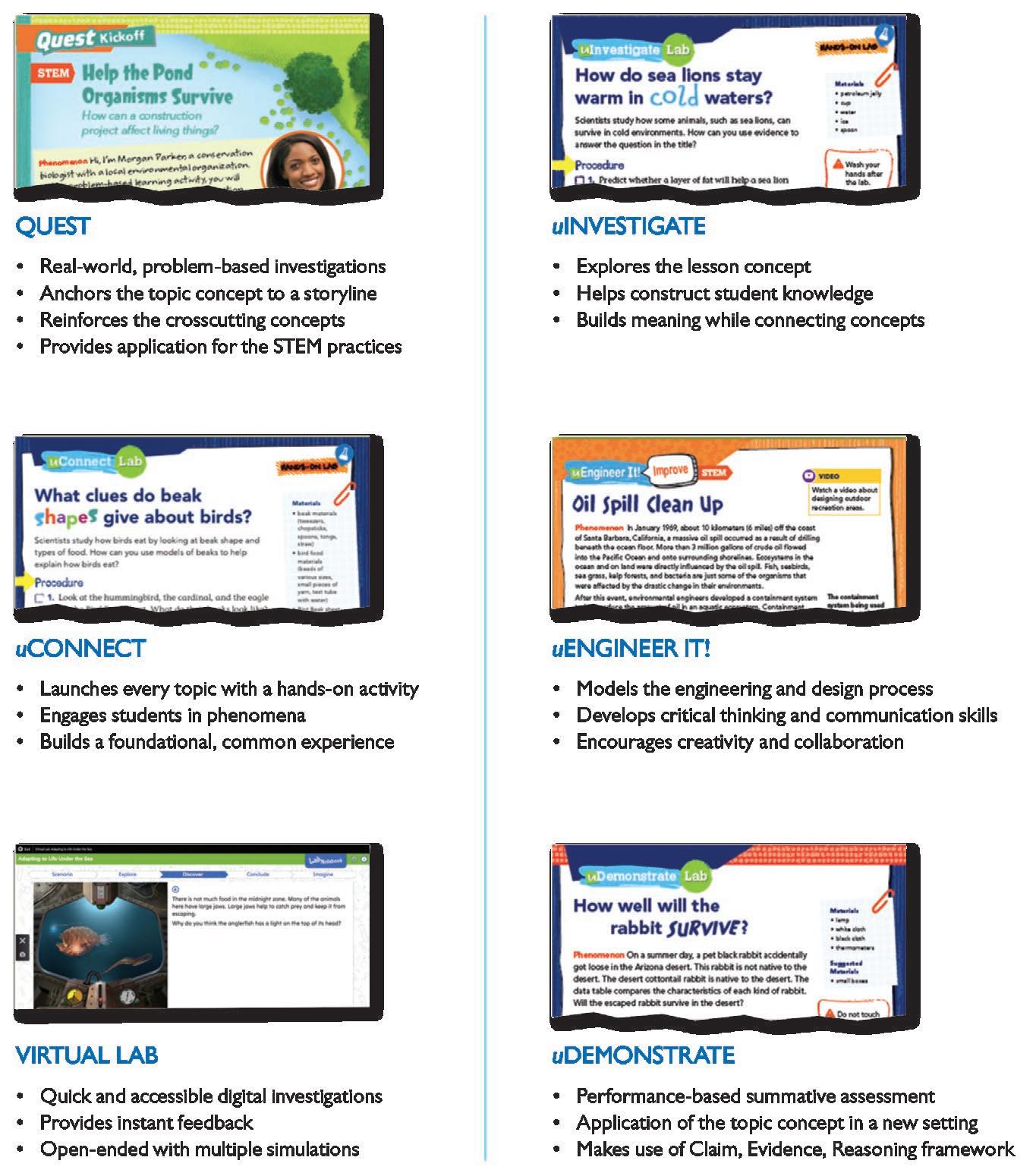 Students actively learn, investigate, and acquire key content knowledge through a variety of components both in print and digital.