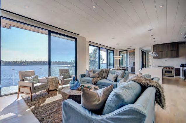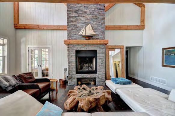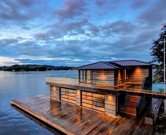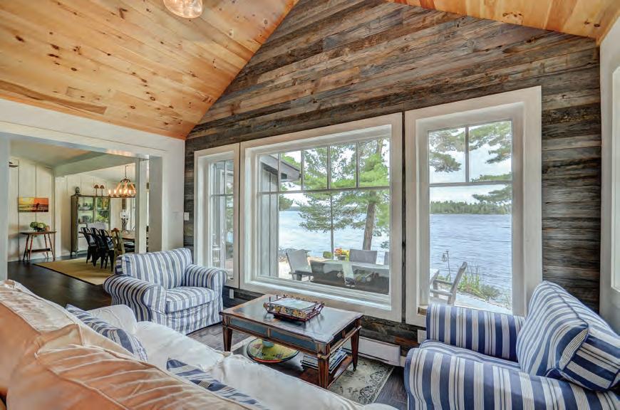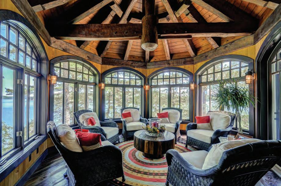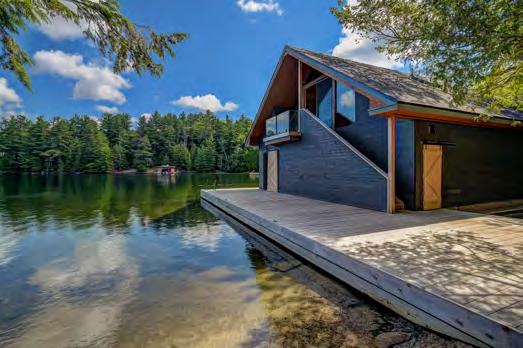 But all these modern comforts won’t entirely replace the appeal of the cozy, classic Muskoka cottage design, with its nauticalinspired charcoal-painted wood (or shingle) siding, peaked gables and crisp white trim. This picturesque style, a regional adaptation of the New England/Adirondack/Cape Cod style but unique to Muskoka and the surrounding lake country, endures both in restored early1900s cottages and in modern reproductions. And it’s as practical and charming as ever.