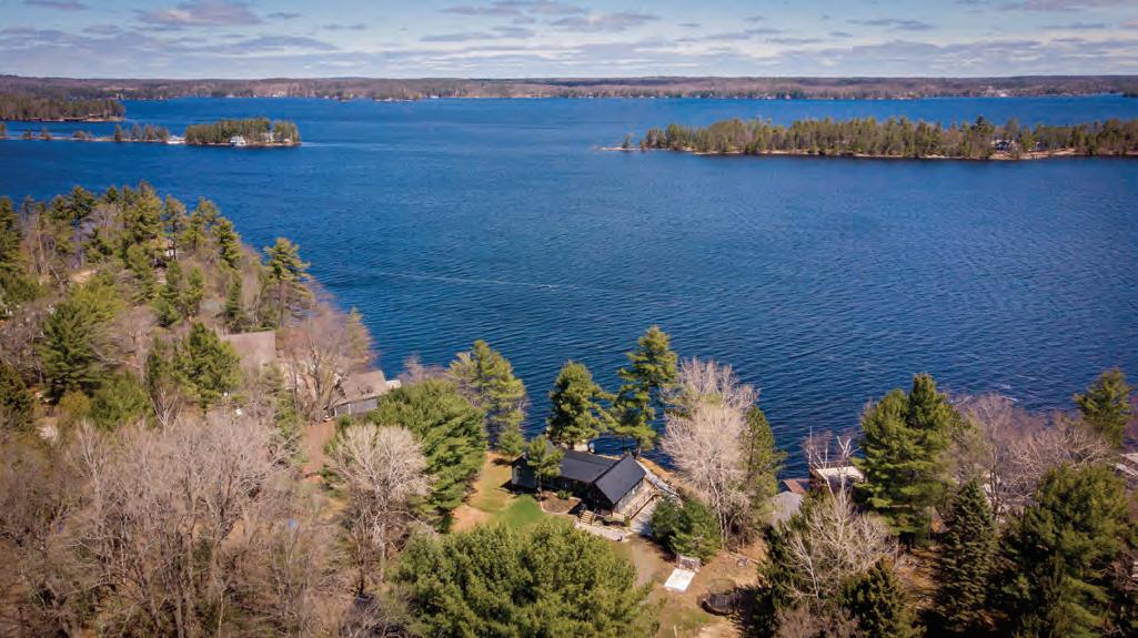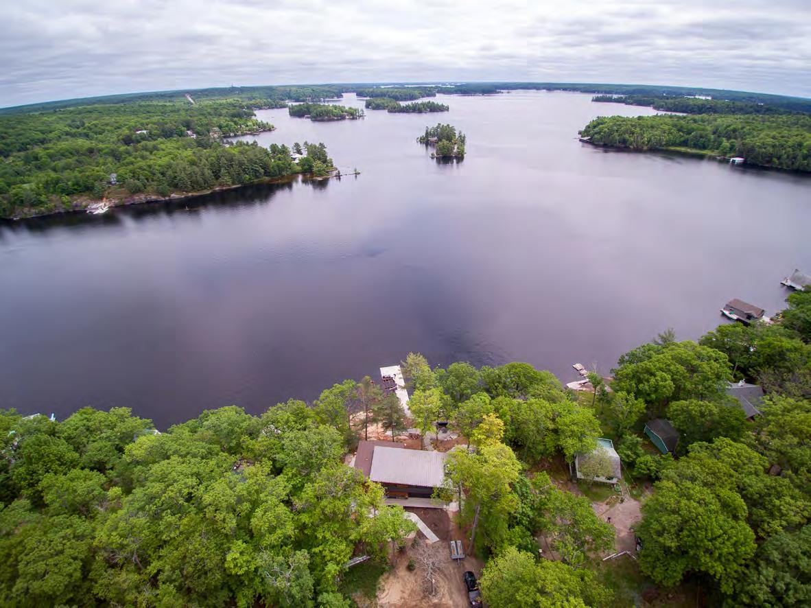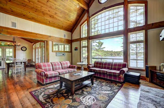 The property, first developed in 1903, now consists of the 4,000-sq.ft. main lodge with a large wraparound porch, nine individual cottages, eight finger docks, and roughly 2,400 feet of water frontage, encompassing nearly 40 acres on a peninsula, surrounded by Crown land and water.