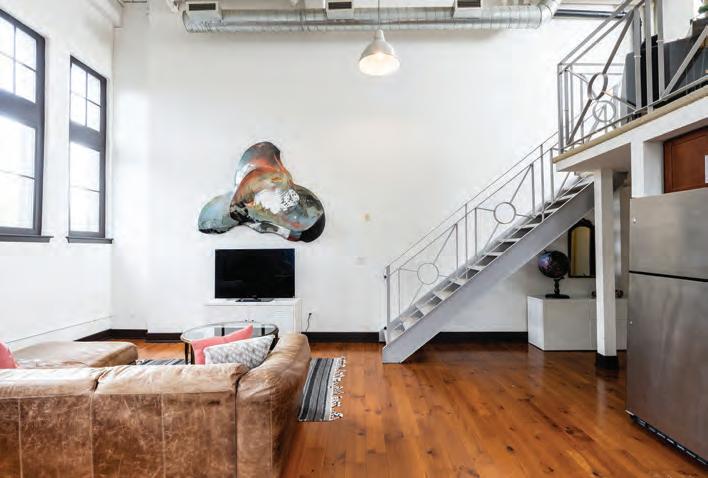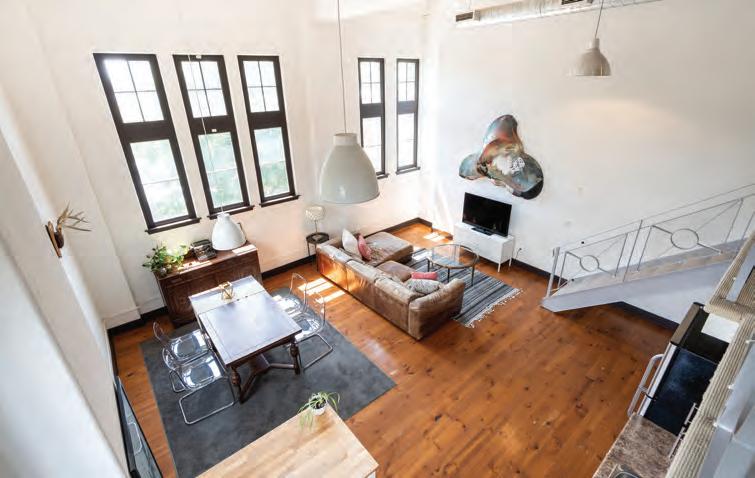 Despite its thoroughly modern comforts (roomy, grey-painted kitchen tucked under the mezzanine;