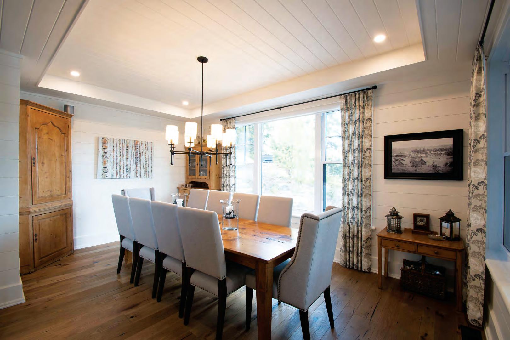 well-appointed laundry and pantry; a private main-floor retreat for Mike and Martha’s bedroom suite, tucked away from what one day will inevitably be a house full of grandkids), the classic look is front and centre, especially in finishes. Designers Michelle Metrow and Carolyn Vink carried through on the classic Edwardian-era look with pine antiques and, especially, in details like the main bathroom’s classic white subway and hex tiles, complemented by matte black fixtures. Elsewhere, the woodwork references the 1920s with deep baseboards and carpenter-finished door and window casings. The bright, spacious rooms may be modern-day, but the feeling is pure, cozy century cottage.
