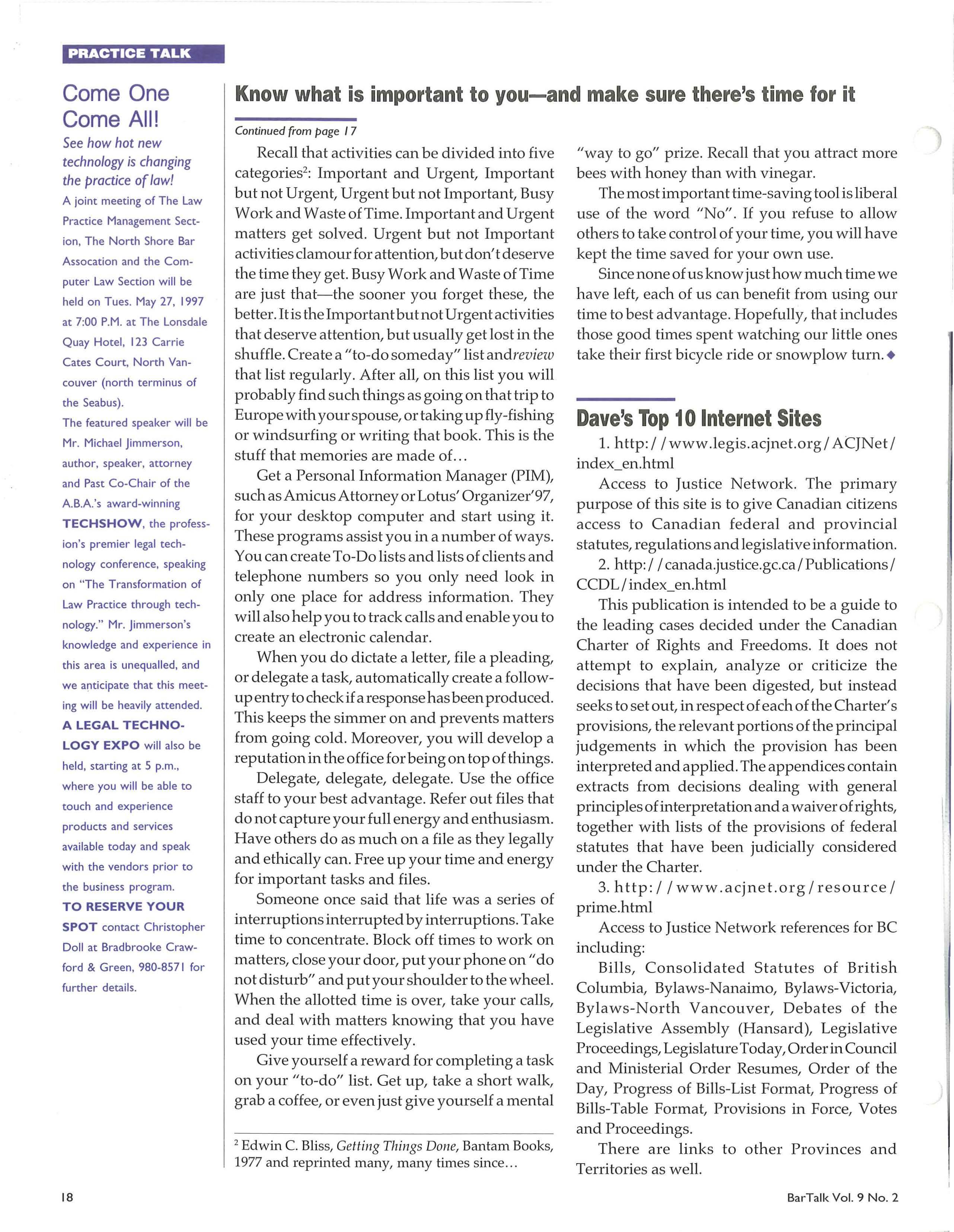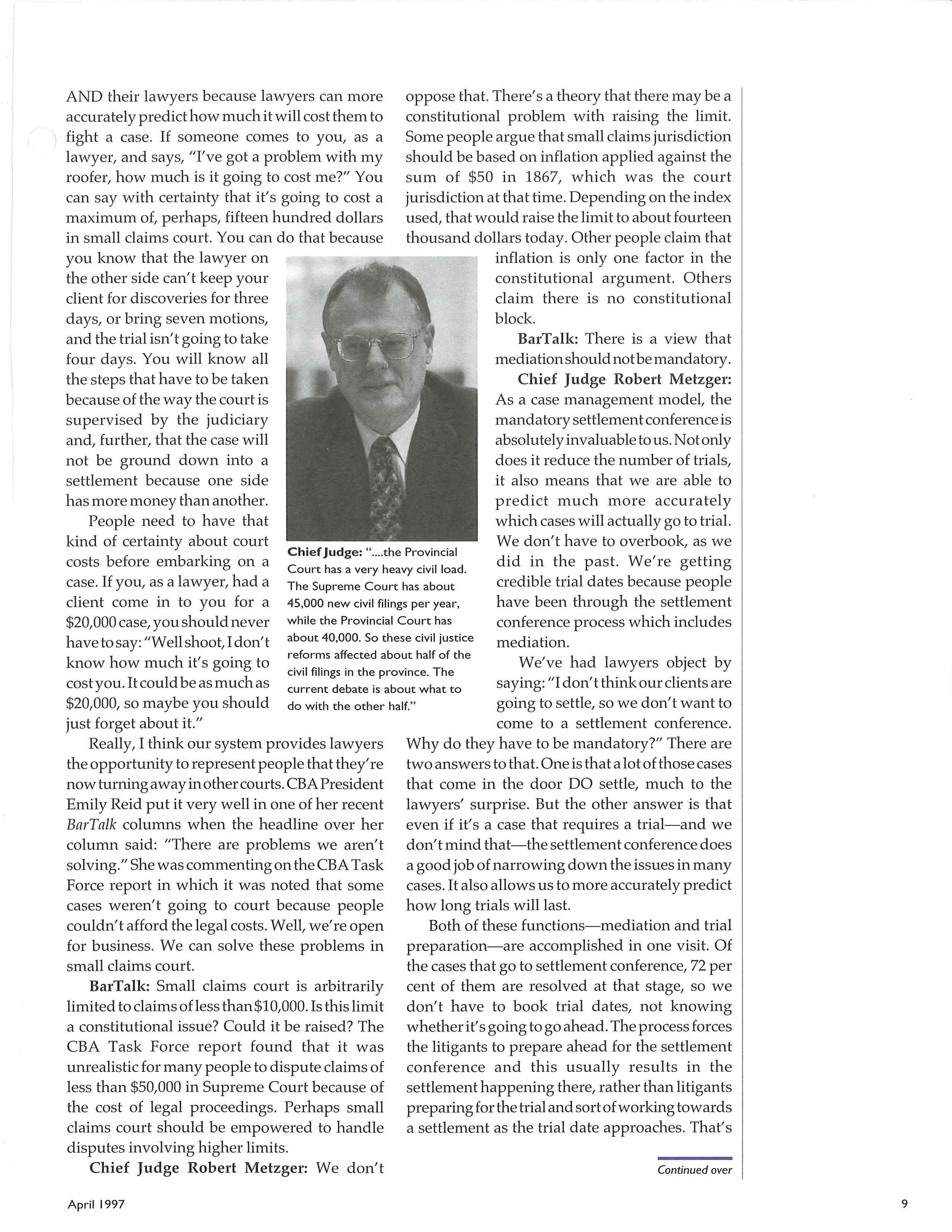 BarTalk is published by the British Columbia Branch of the Canadian Bar Association, lOth Floor 845 Cambie Street Vancouver, BC V6B 5T3