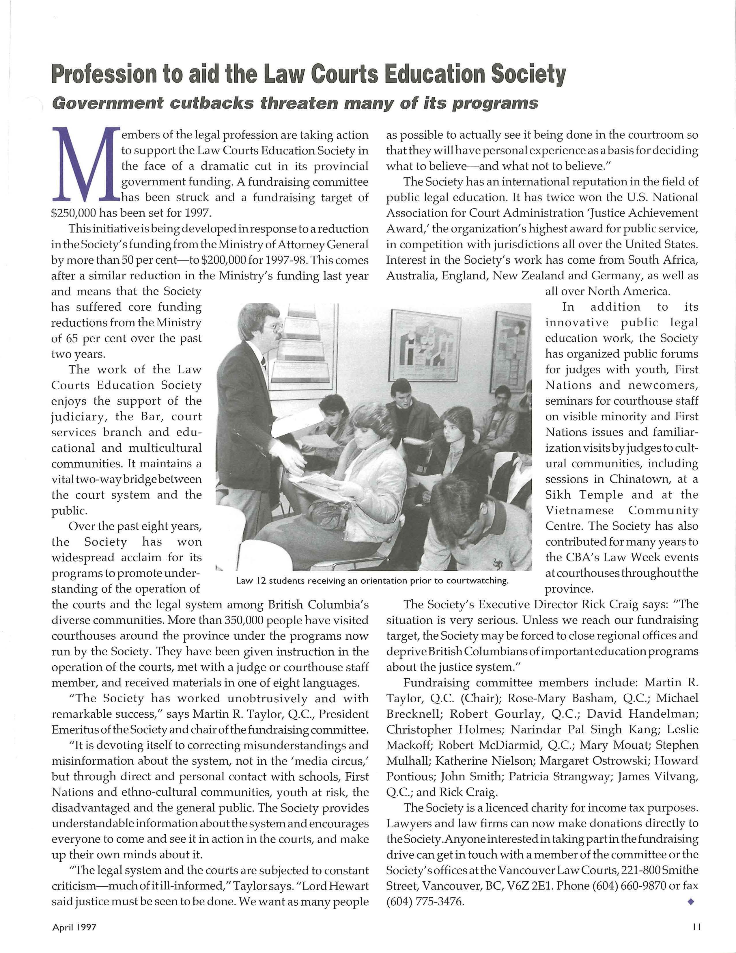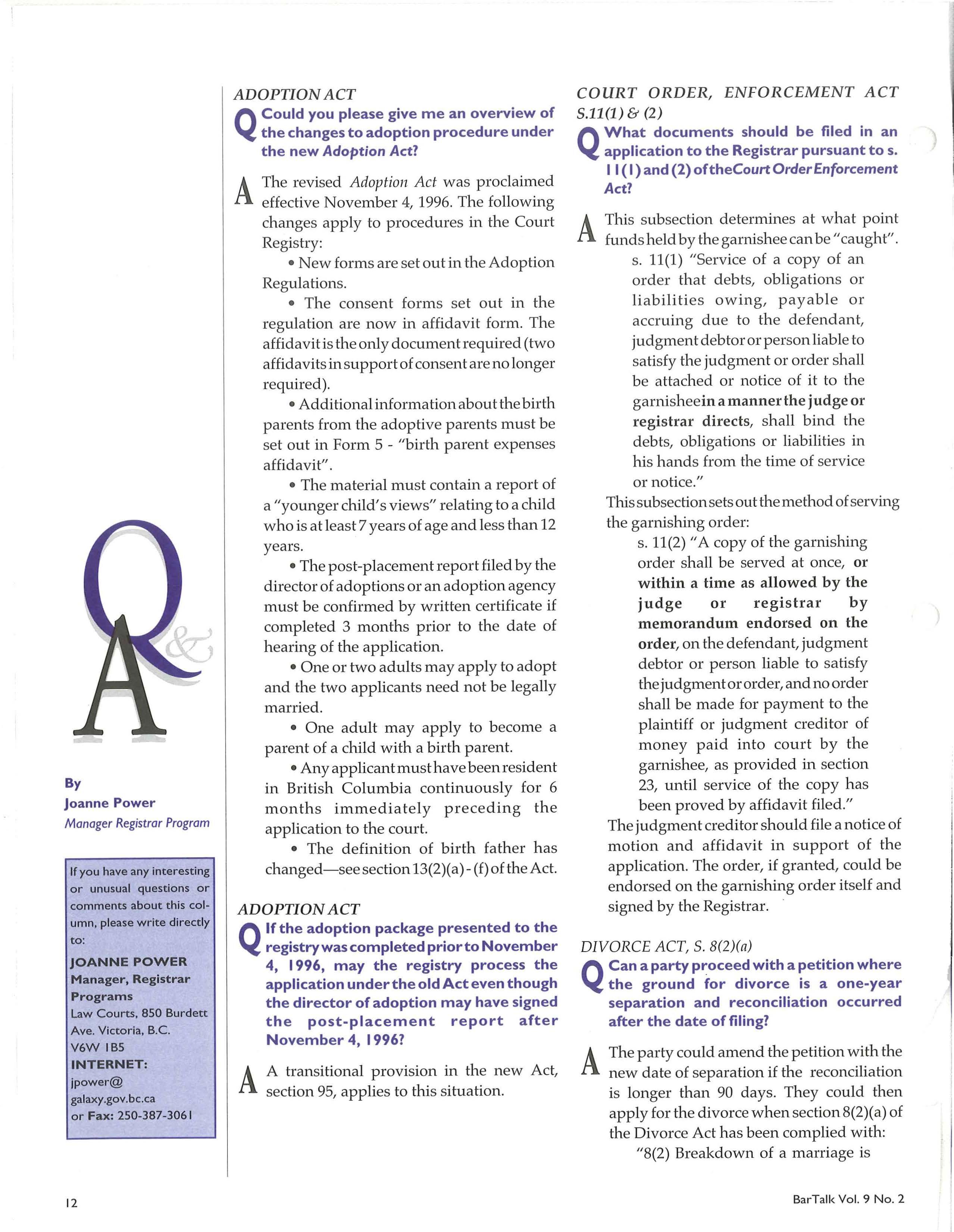 Source: Ministry of Attorney General , Communications and Education Division , 1Oth floor , 1001 Douglas St., Victoria Fax: (250) 356-9037.
