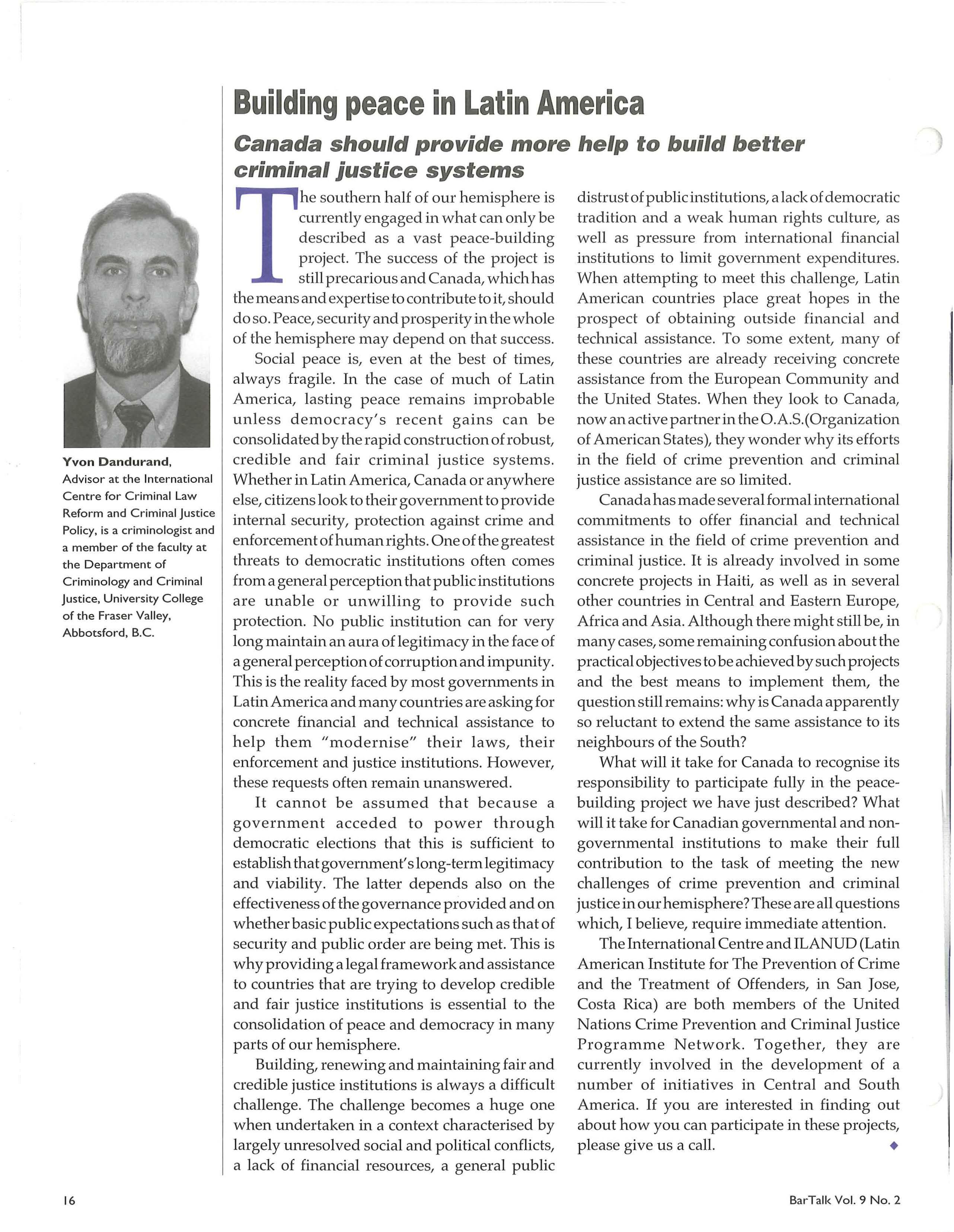 "An initial concern was to ensure that the legacy of the Law Reform Commis s ion would not be lost. When the commission ceased operations there was a significant body of work in progress and we hop e to bring at lea s t some of that to completion. The Institute also wants to take on new law reform projects and explore new ways of making them work. Essentially, though, the objectives ofthe new Institute remain the same as those of the Law Reform Commission: to improve and modernize the laws of the province for the benefit of all its citizens.