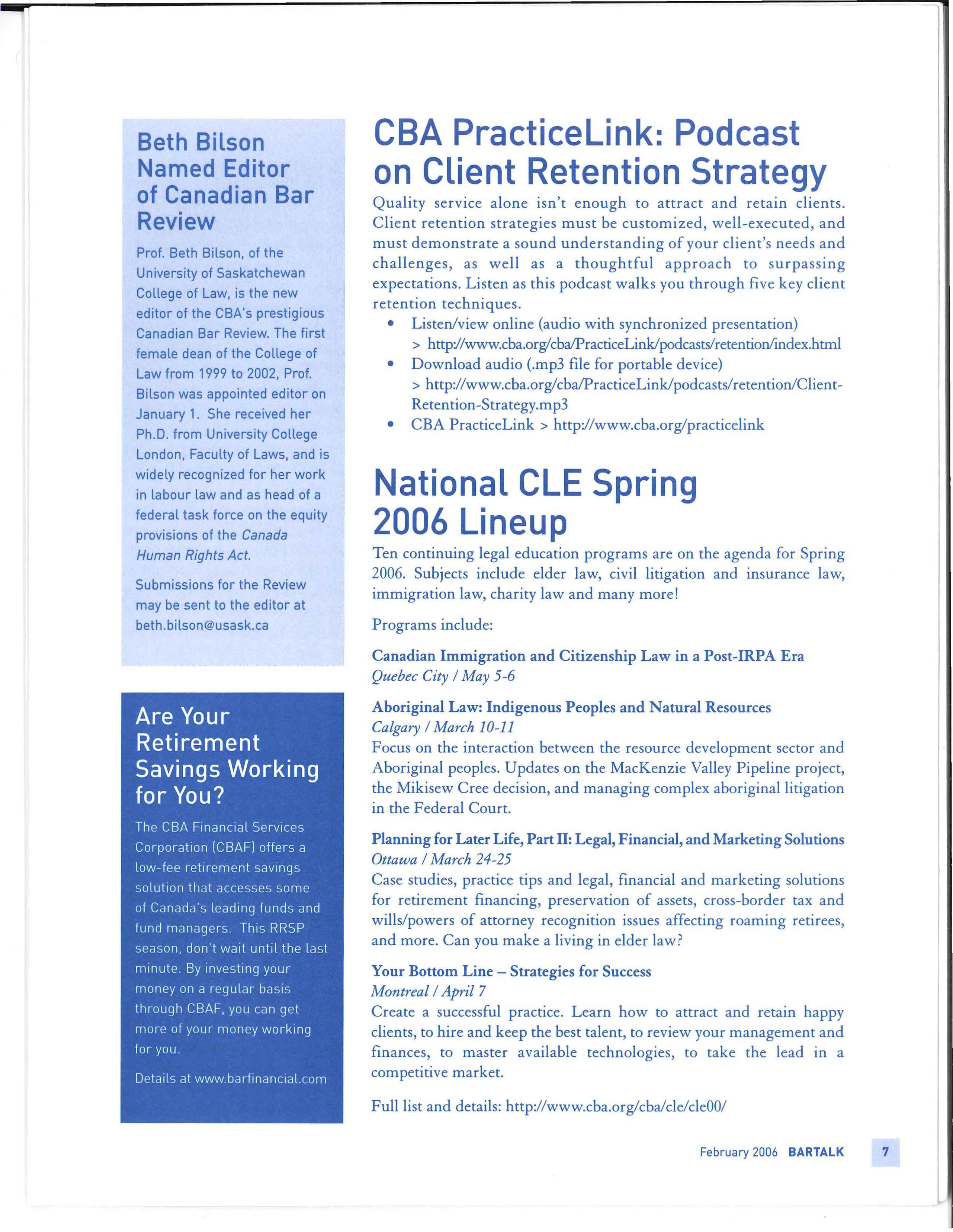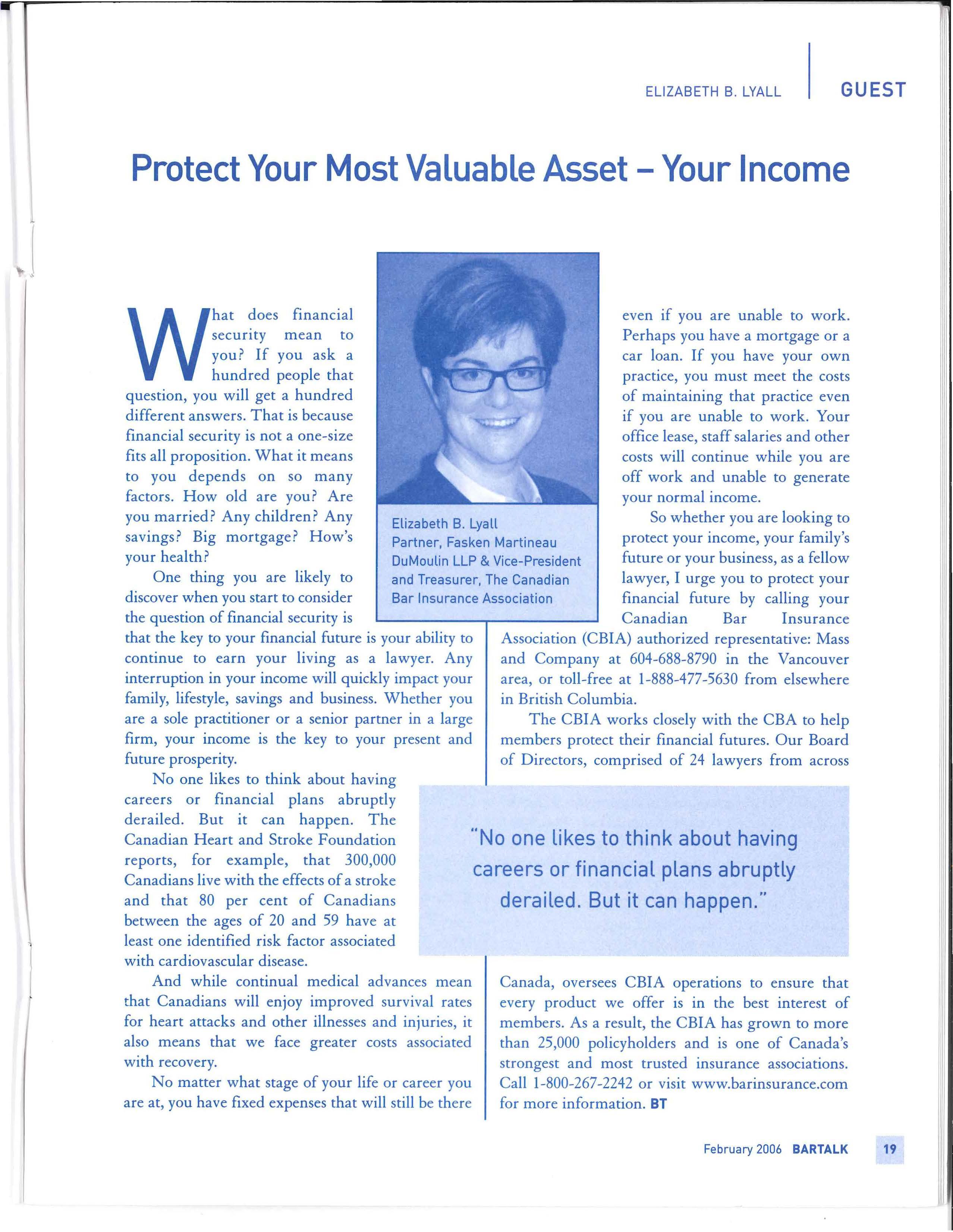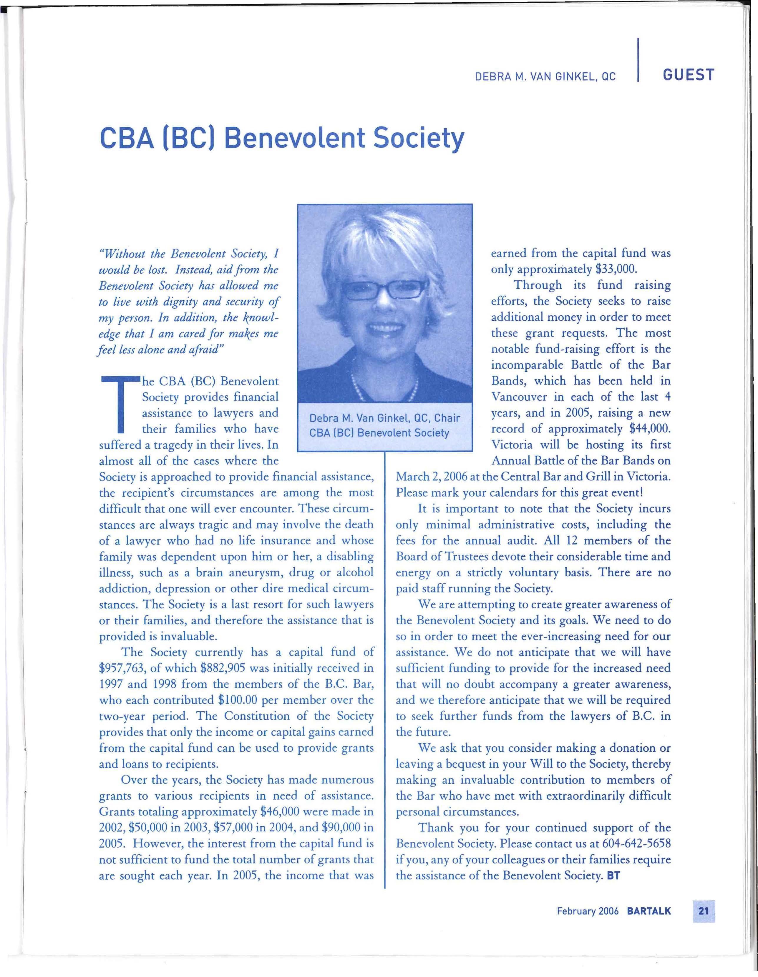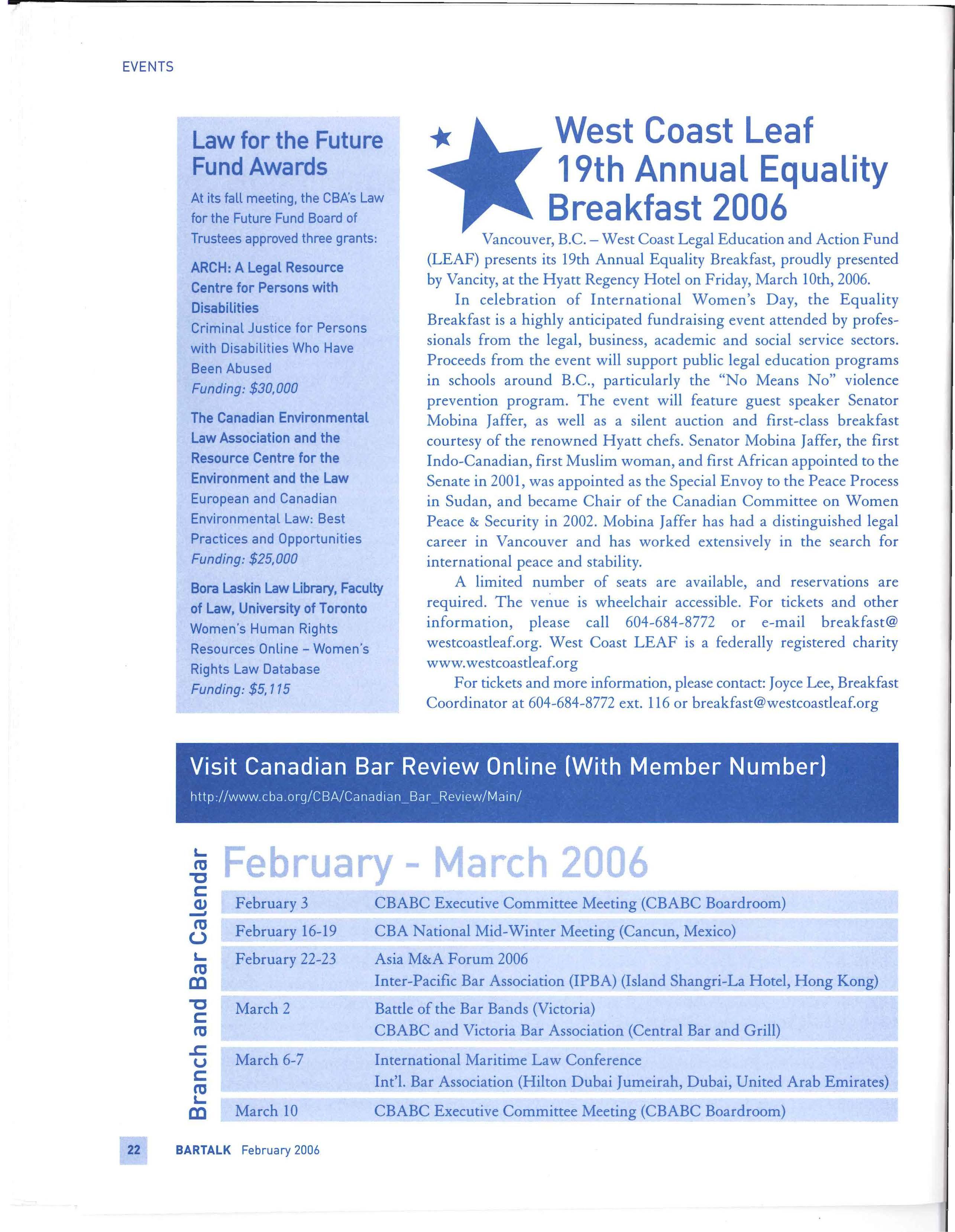 BarTalk is published si x times per year by the Canadian Bar Association, British Columbia Branch