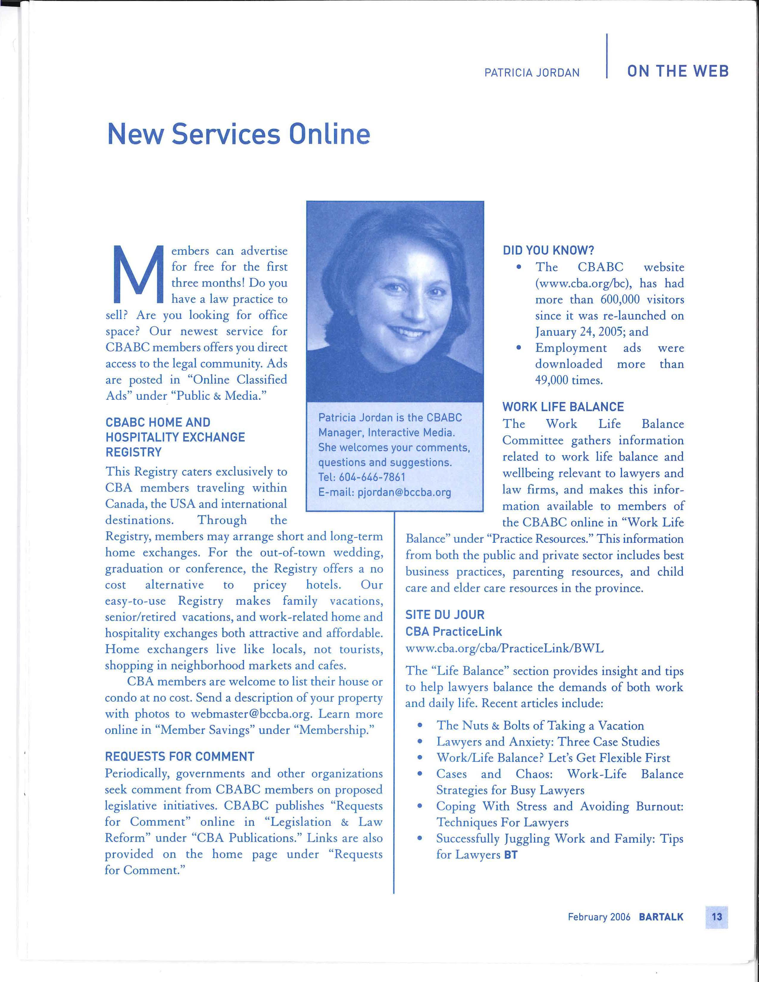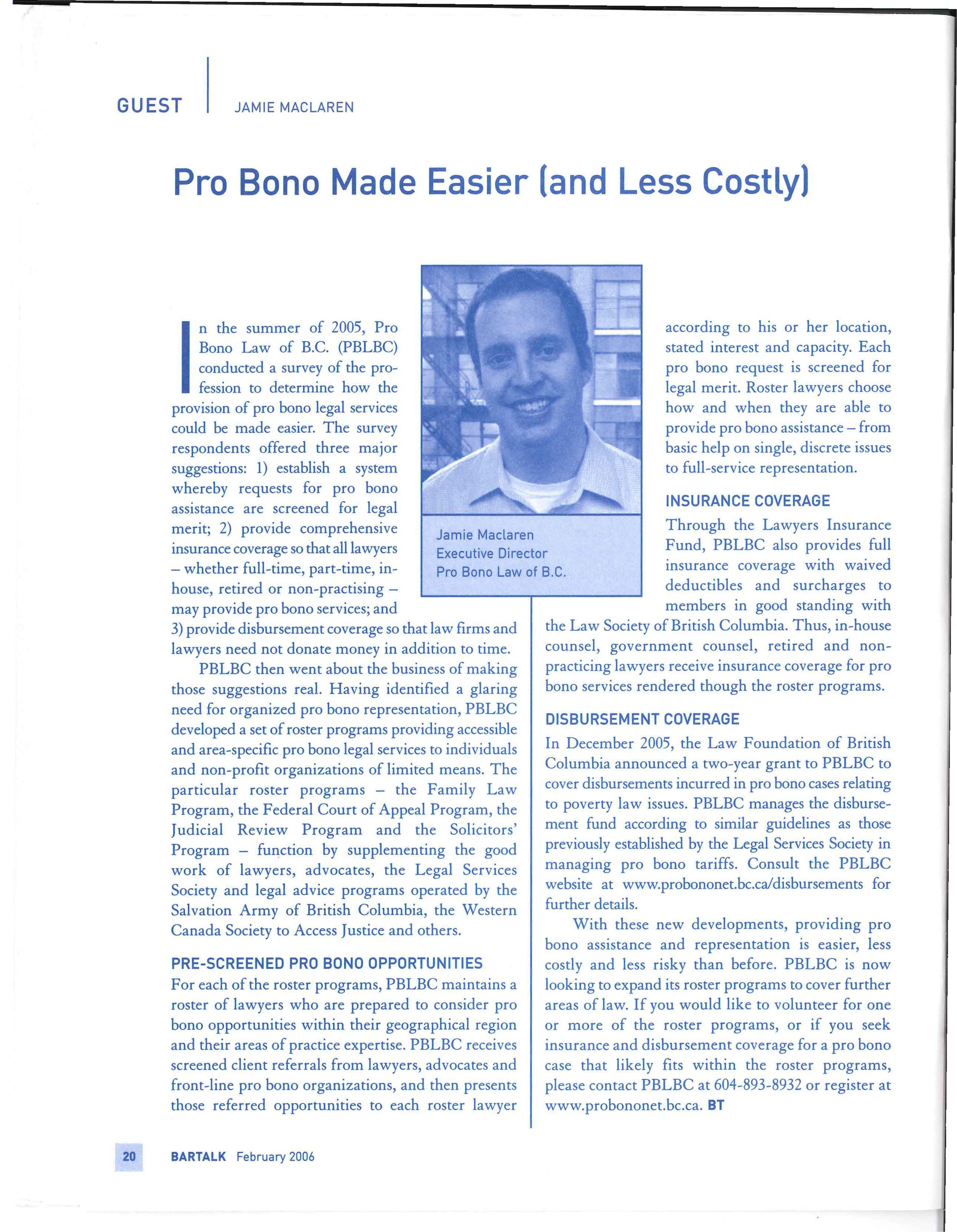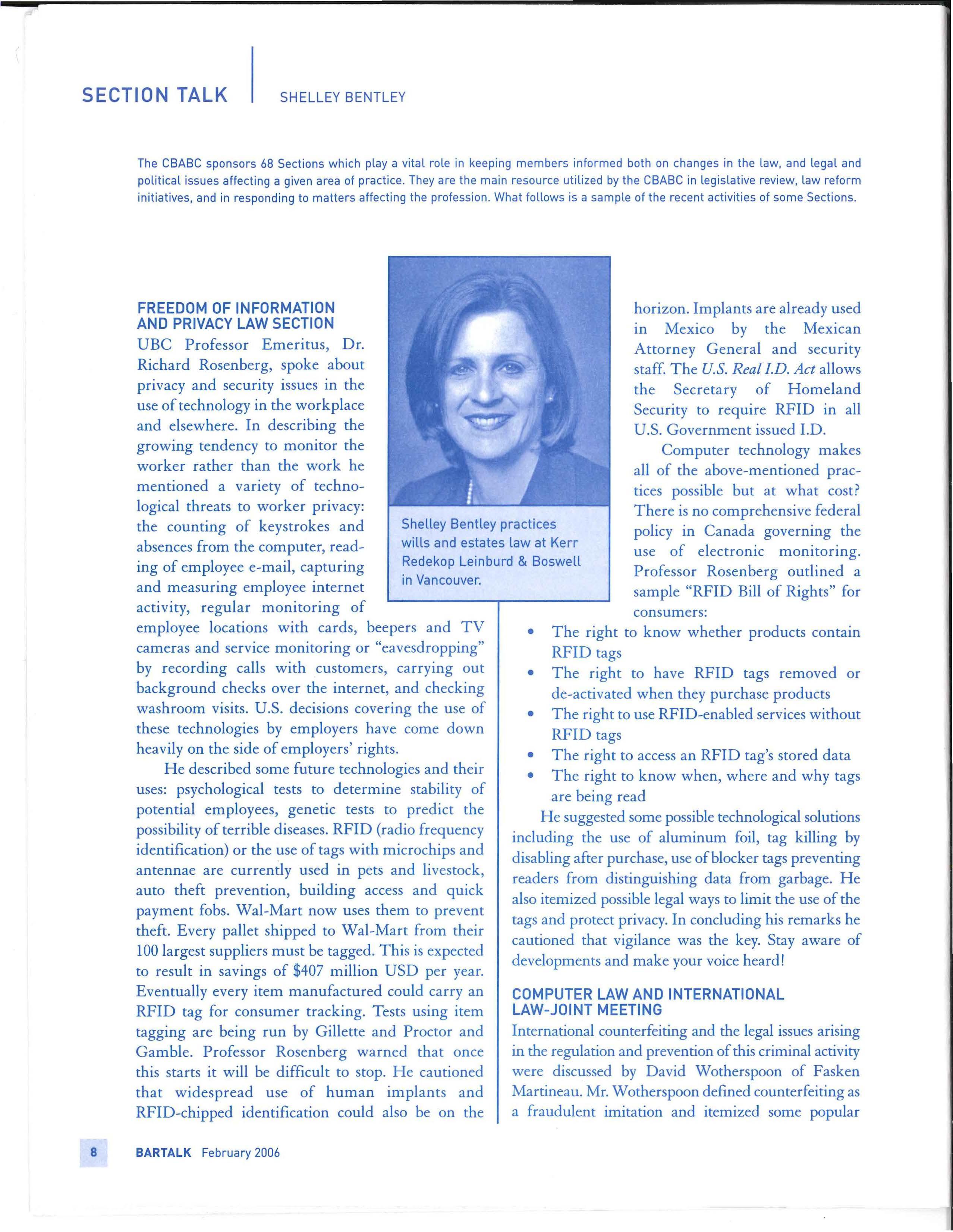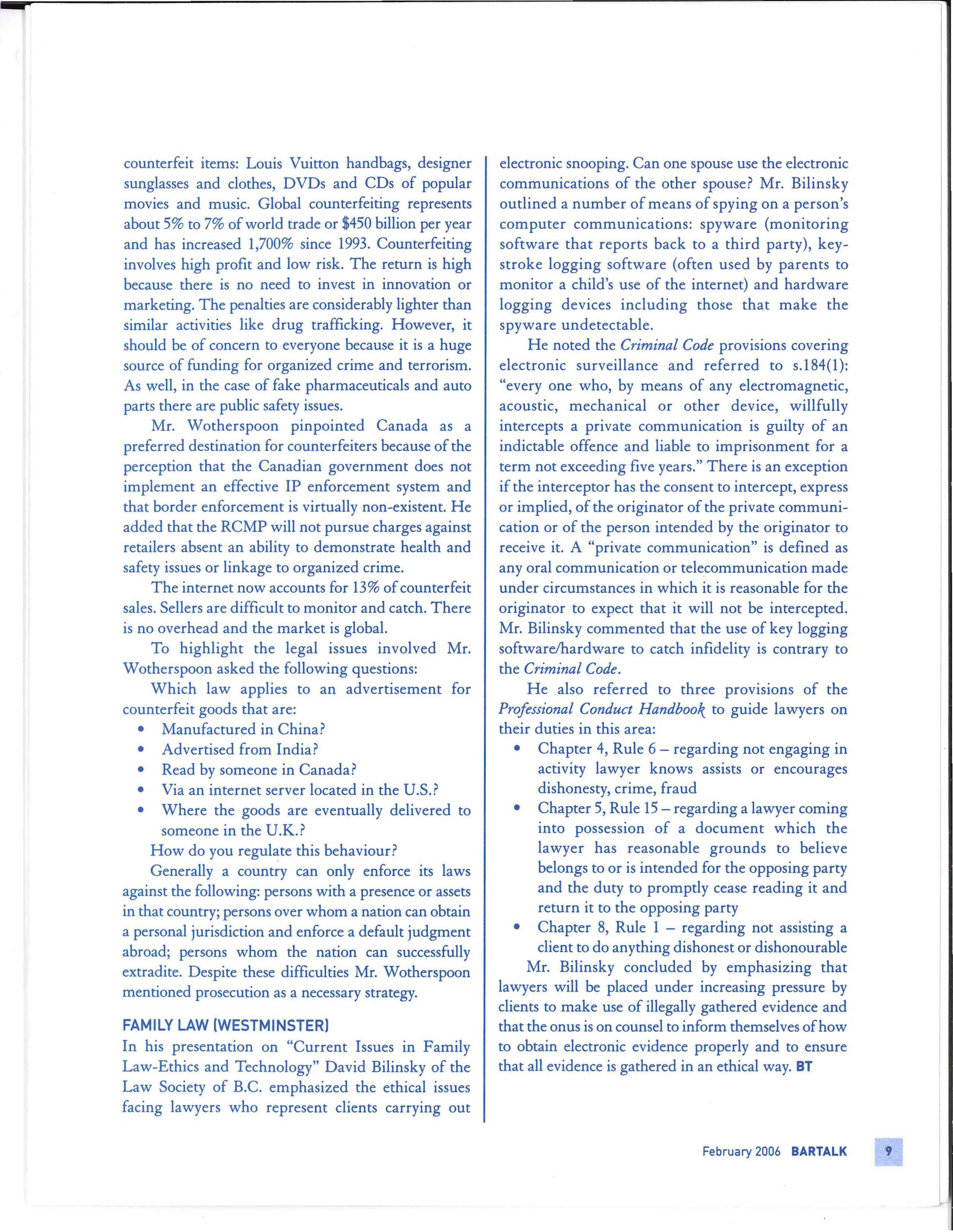 BarTalk is published si x times per year by the Canadian Bar Association, British Columbia Branch