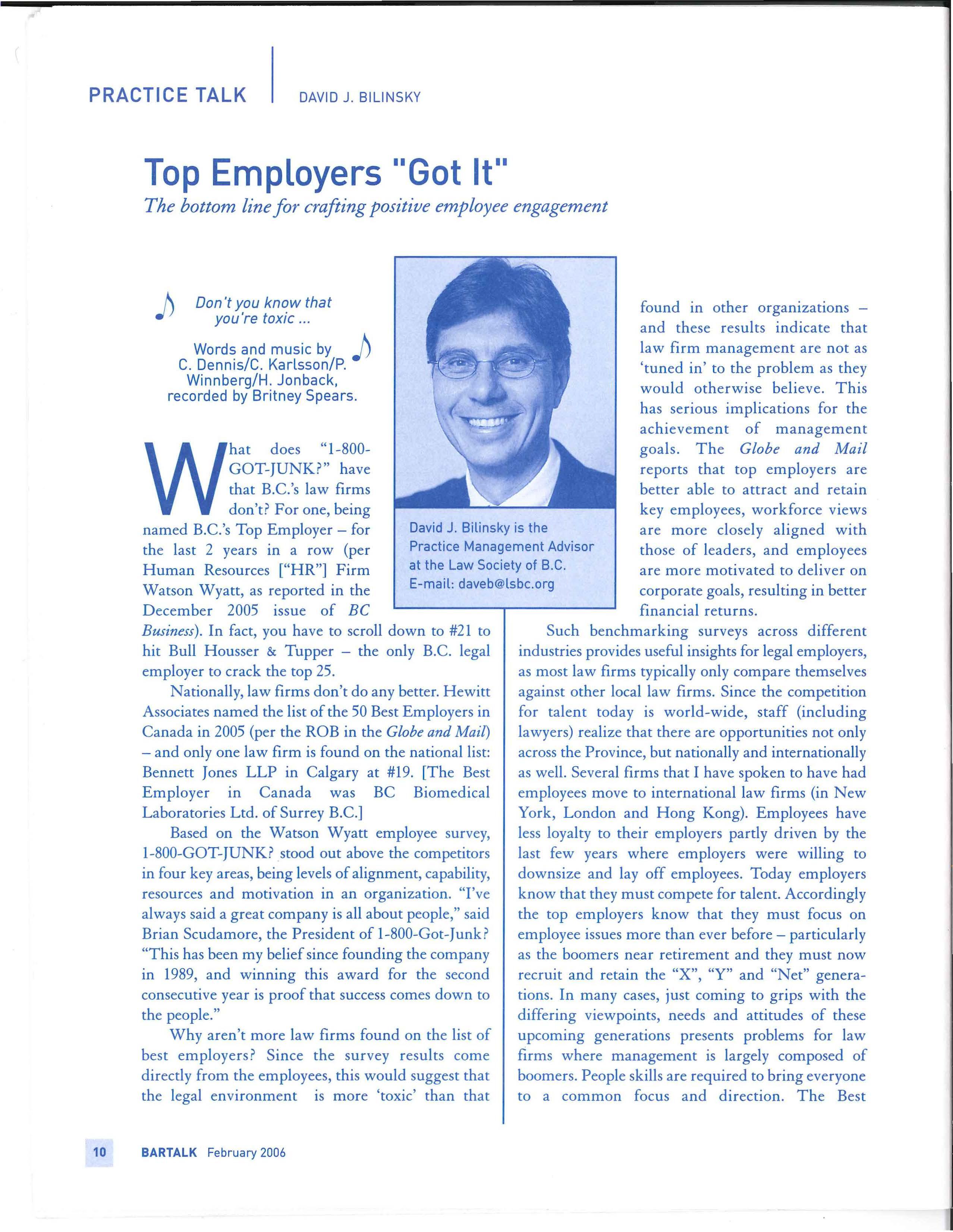 Direct Bar Talk advertising inquiries to: Jesse Tarb otton Communications Coordinator Tel: 604-646-7856 or 1-888-687-3404 E-mail: jtarbotton @bccba.org