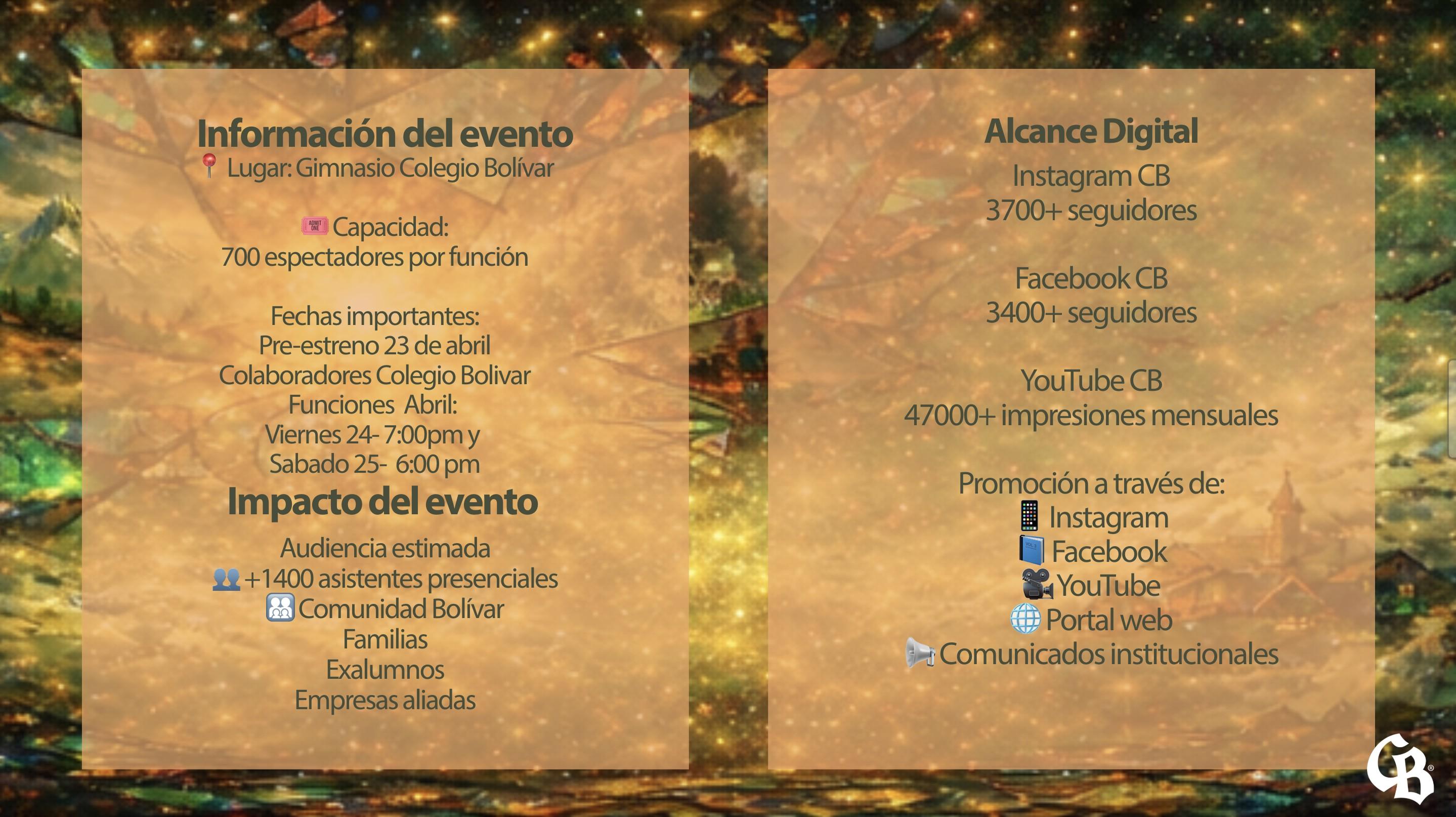 Fundado en 1947, el Colegio Bolívar es una de las instituciones educativas bilingües más reconocidas de Colombia, comprometida con el desarrollo académico, artístico y humano de sus estudiantes.