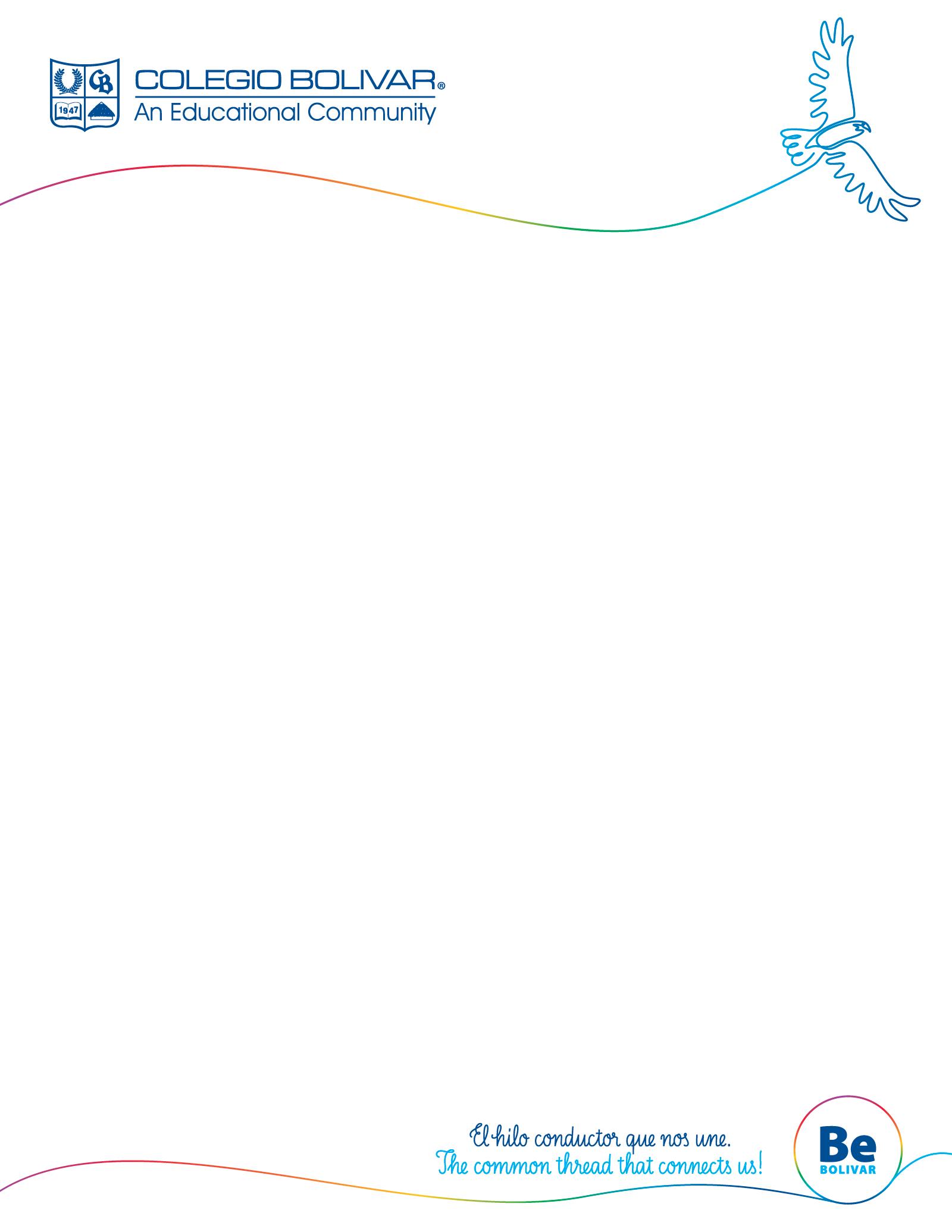With this autonomy as its fundamental pillar, the Admissions Process at Colegio Bolívar begins once the applicant's family submits the duly completed Application for Admission form , along with all required documentation , to the School's Admissions Office . This process, per se, does not imply acceptance of the applicant into the school program offered by our institution.