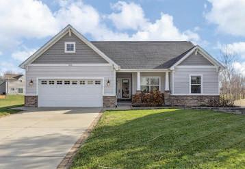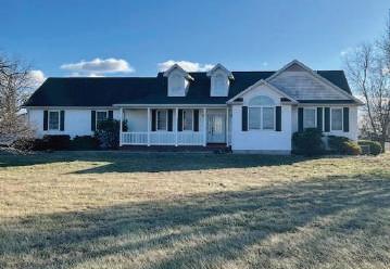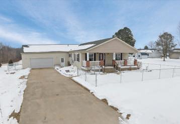 Thisisalovely3/4brickranchon8acres. Beautifulvaultedceilings,skylights&tonsof naturallightthroughout.Frontporchwelcomes youtoentryfoyer&spaciouslivingroomw/ woodfireplace&electricinsert.Eat-inkitchen hascenterislandw/breakfastbaralsoopento thediningroom-perfectspacetoentertaina largegroup.Outthebackdoor,largetwo-tiered deckw/benchseatingoverlookingthe sprawlingyard.Closeby,thereisa30x48pole barnw/electricity,workshopw/concretefloor, &twoindustrialsizedgaragedoors