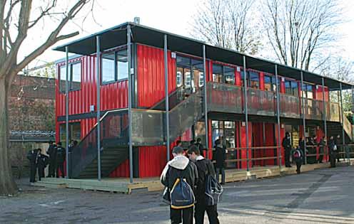 Em Londres, na Inglaterra, o contêiner é usado nos mais diversos tipos de projetos, desde salas de aula, empresas, prédios residenciais e aconchegantes chalés. A Container City, idealizada por Eric Reynolds, da Urban Space Management, é um exemplo. Iniciou em 2001, com apenas um prédio formado por 12 conjuntos, montados em apenas cinco meses. A ideia agradou e, em 2003, foi instalado outro andar com mais três apartamentos. Hoje, o local virou uma cidade multicolorida, ecológica e barata no Trinity Buoy Wharf, em Docklands, região portuária e industrializada de Londres, onde os contêineres são encontrados com facilidade. (a.M.) M