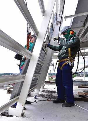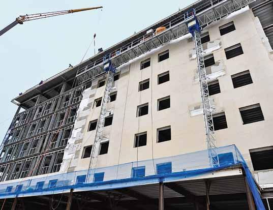 A partir da agilidade obtida pela estrutura em aço, foi proposta a antecipação do fechamento das fachadas. A obra foi dividida em duas alas de tal forma que a execução da estrutura pôde ser conciliada com o processo de montagem das vedações nas áreas onde a construção estivesse mais avançada. “Como o sistema steel framing não necessita de guindastes, conseguimos otimizar a mão de obra, reduzindo o tempo de execução e, consequentemente, aumentando a produtividade”, conclui o engenheiro Eduardo Giacomello. (e c.) M
