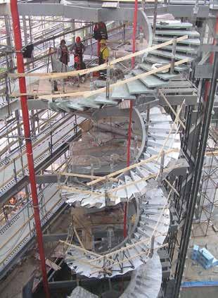 fatores que mais pesaram na escolha do aço. De acordo com o gerenciador da obra, “construir em pilares e vigas de concreto em um edifício com 100 moradores traria muitos incômodos e a obra demoraria mais para ser concluída”. Neste contexto, a tecnologia seca, limpa e rápida se mostrou a melhor opção. "Os benefícios também se refletem no custo total do empreendimento. O item mão de obra pesa nesse tipo de construção. Se o tempo de obra é reduzido, os gastos com operários também o são”, complementa. Para minimizar os transtornos, a obra foi feita de fora pra dentro.