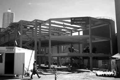da universidade por novos espaços: um incremento de 5.000 m2 de área construída sobre o centro educacional já existente. E para viabilizar o novo conjunto de salas de aulas, áreas de circulação verticais e auditório no pavimento térreo, tudo em um período inferior a dois anos, o aço se mostrou um importante aliado.